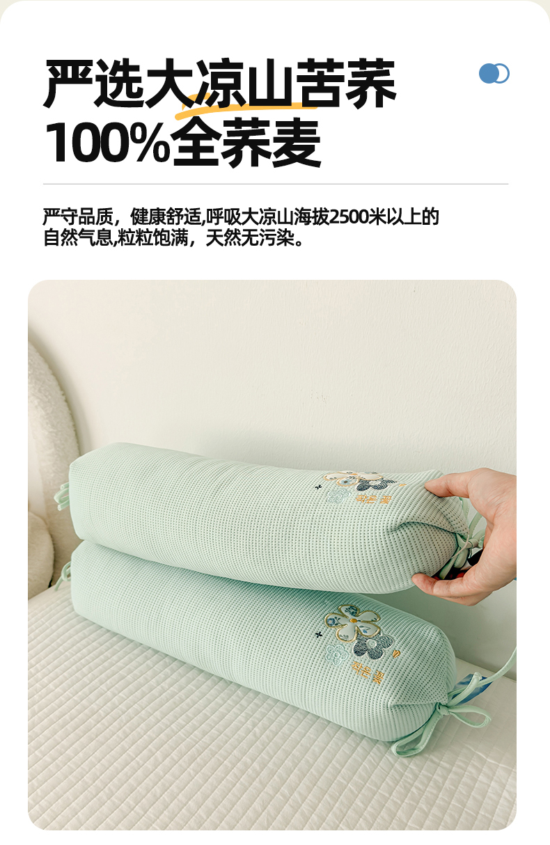 (总)麦肯锡 2025新款圆柱形荞麦枕枕头枕芯,翠绿 43x22cm,鹅黄 43x22cm,柔粉 43x22cm,天蓝 43x22cm,甜橙 43x22cm,银灰 43x22cm
