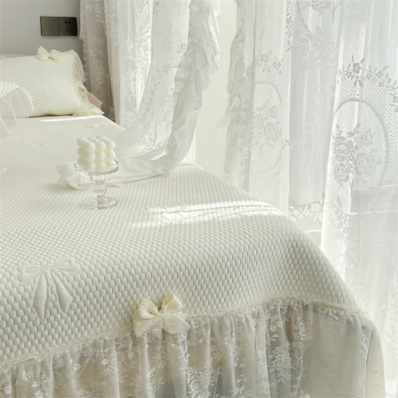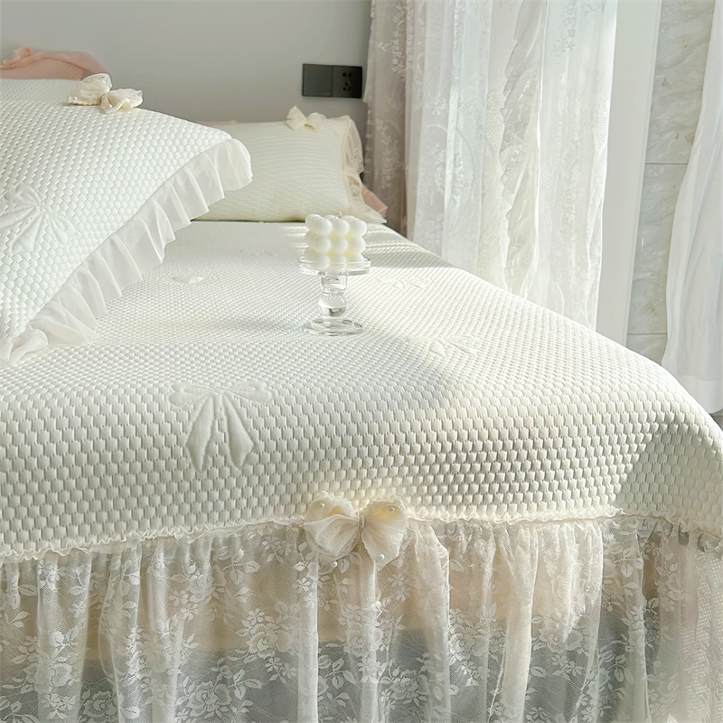 商品名称:恋尚羽家纺 2026新款高分子PE凉泡泡大床裙凉感席波浪冰豆豆凉席席子三件套-蝴蝶结系列 蝴蝶结-米白色