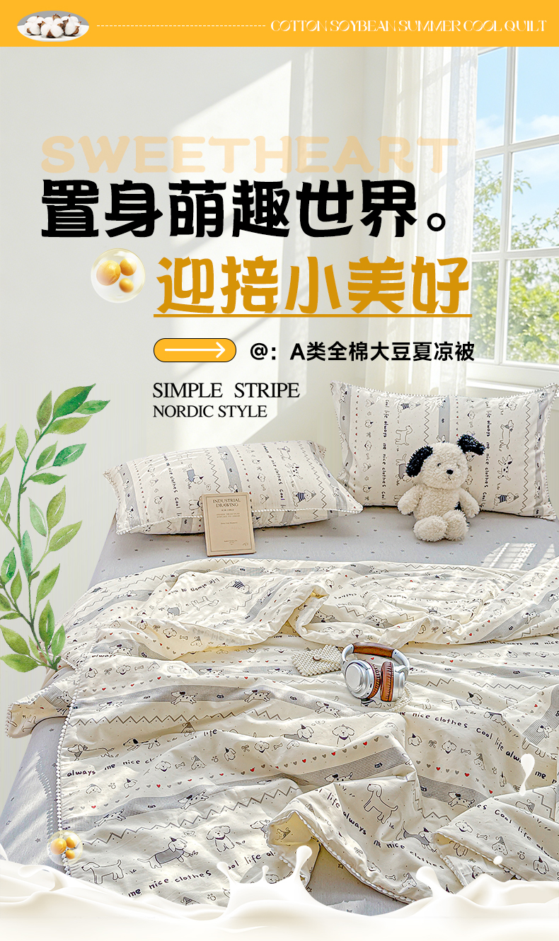 (总)优被业 2025新款A类全棉小清新大豆夏被,KT猫,宁夏,小夜猫,小迷糊,快乐小狗,泡泡糖,草莓园,集美