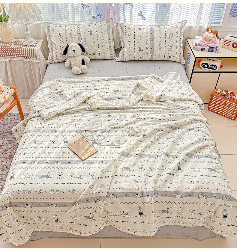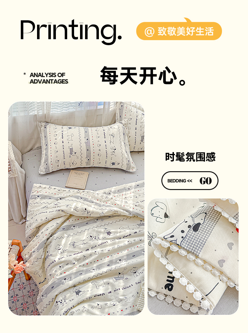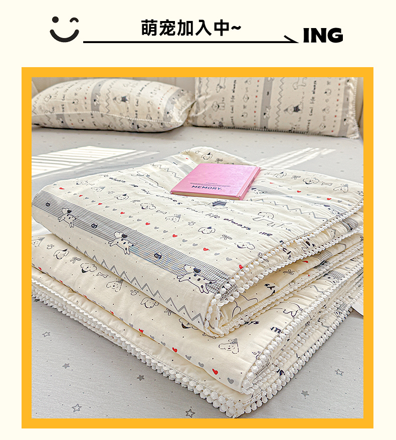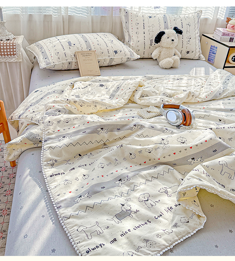 优被业 2026新款全棉韩式小球球款大豆夏被,夏被四件套,空调被(加微信送买家秀) 手绘小汪