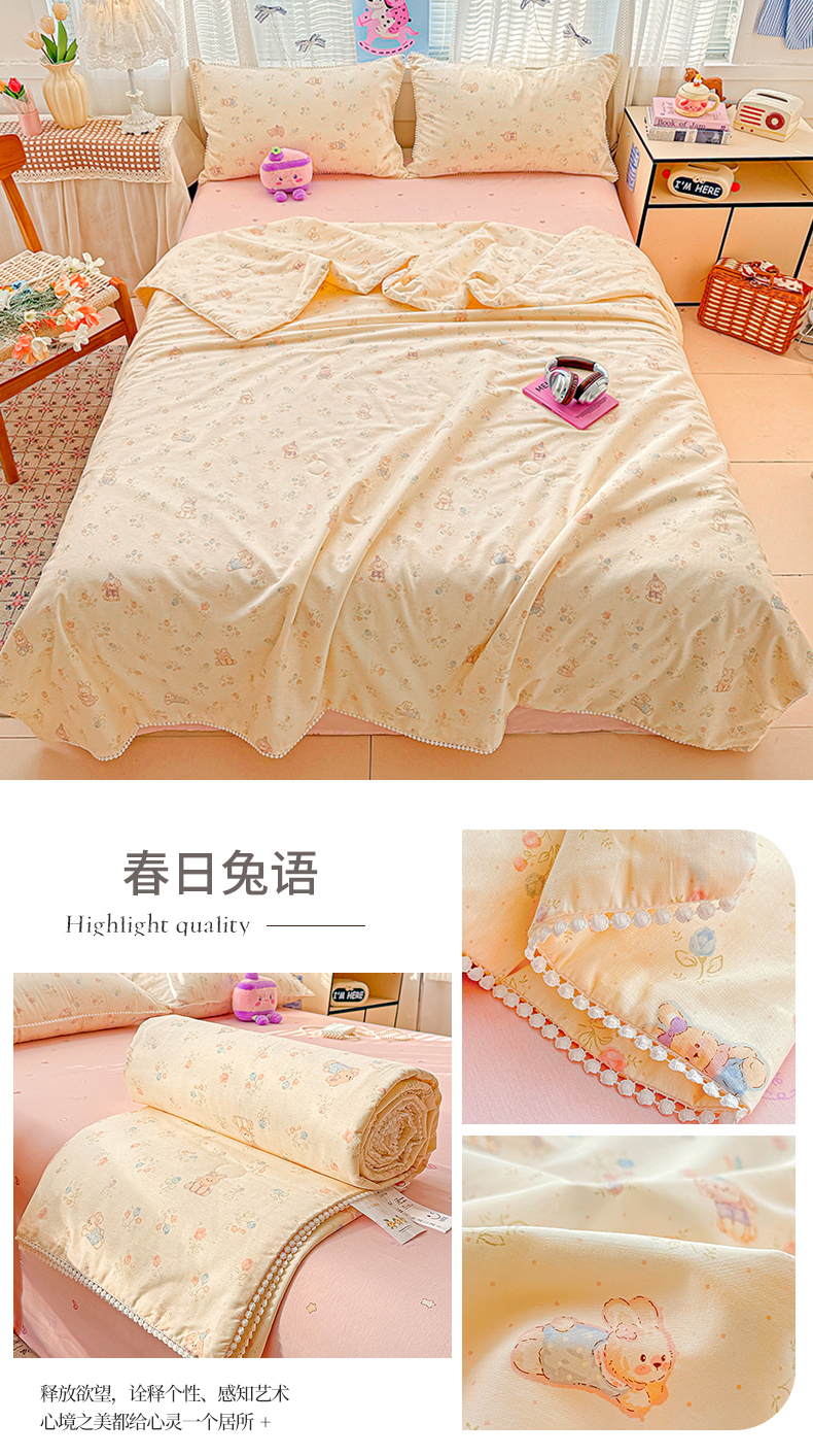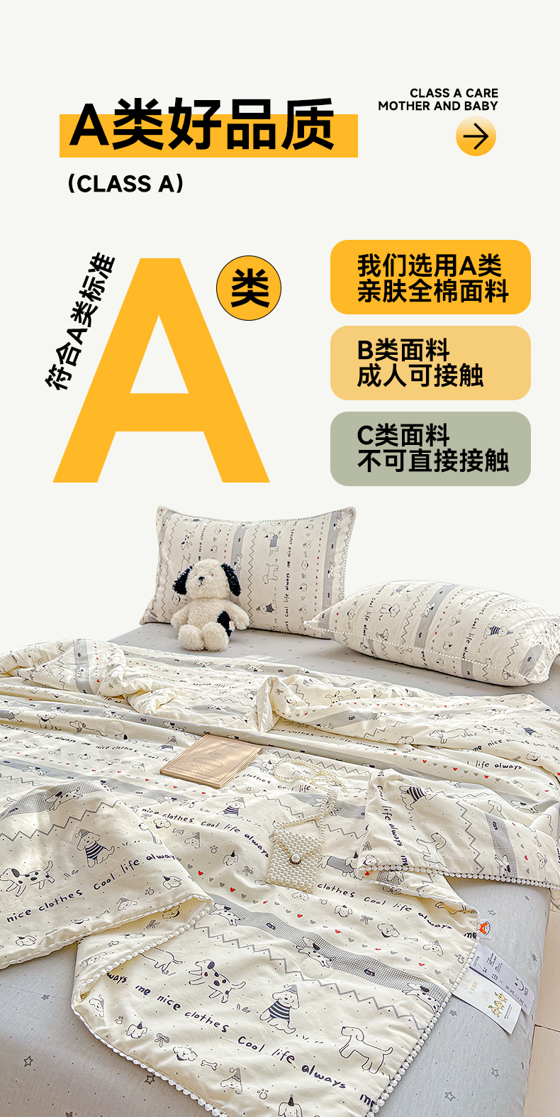 (总)优被业 2025新款全棉双层纱皱皱纱夏被,南瓜熊猫,宠物乐园,小爱心,爱心熊,花语,花馨,蘑菇小兔