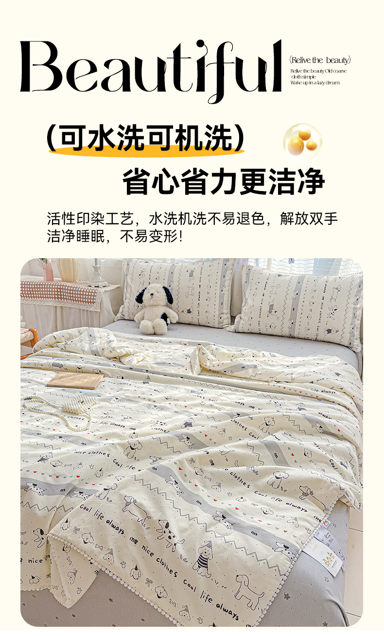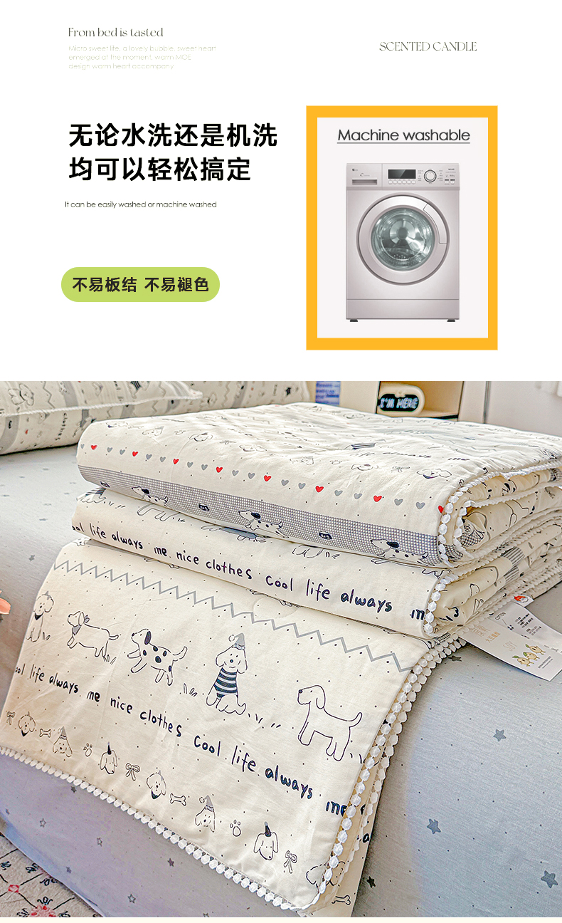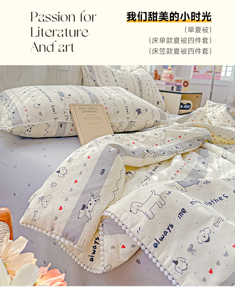• 91家纺网 家纺一手货源 找家纺 优被业 2026新款全棉韩式小球球款大豆夏被,夏被四件套,空调被(加微信送买家秀) 手绘小汪