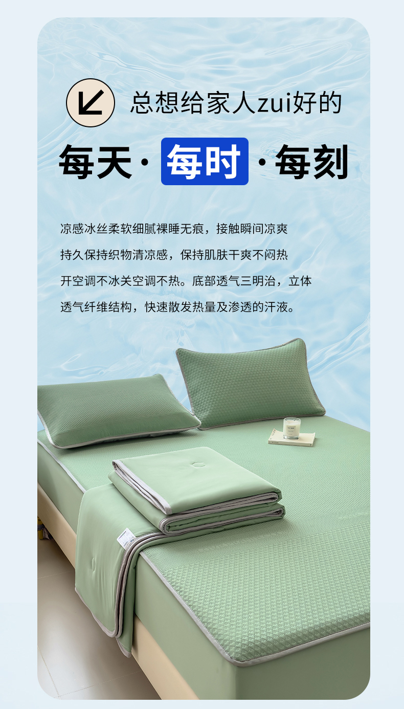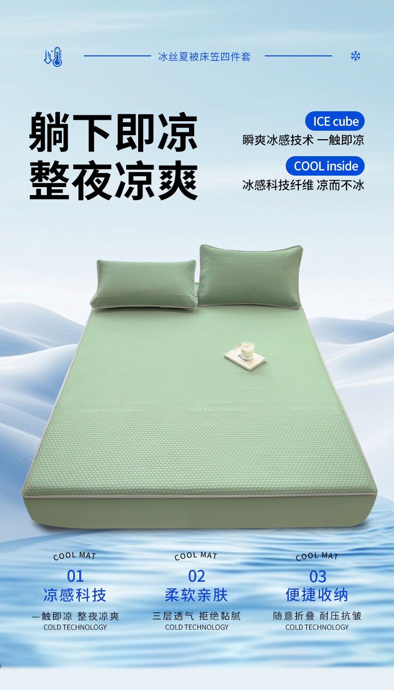 当前位置: 91家纺网 > 商品网购 > 床上用品 > 凉席 > 其他凉席 > 乐家欣 2026新款凉感冰丝床席床笠四件套 冰丝床笠款-松绿