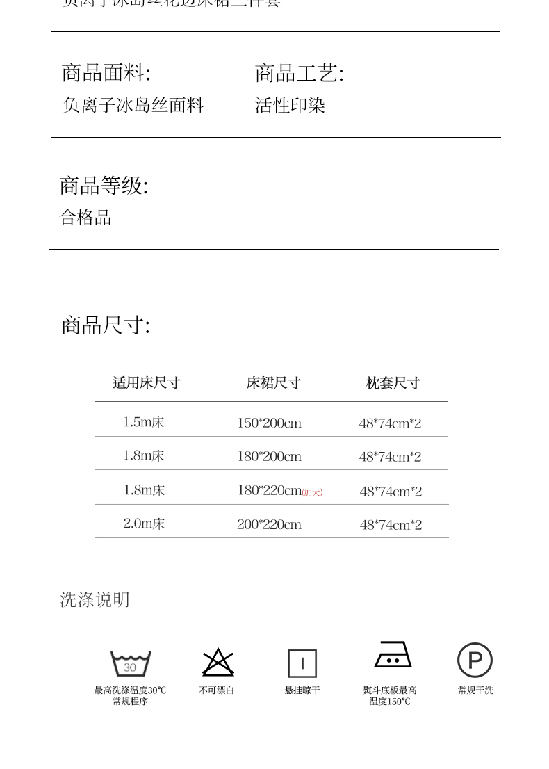 商品名称:瑞宝 2026新款负离子冰岛丝花边床裙款凉席席子三件套-莉莉安 莉莉安-奶油白