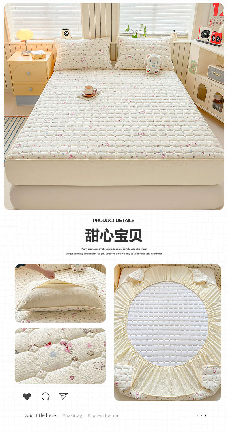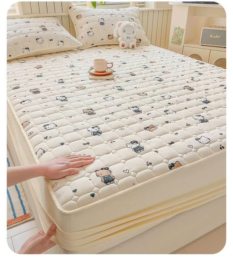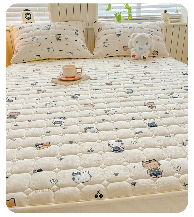 • 91家纺网 家纺一手货源 找家纺 优眠坊 2026新款亲肤泡芙纱夹棉单床笠床笠单件单品床笠三件套 奥利小猫-夹棉款
