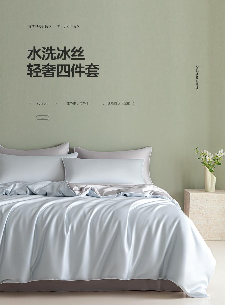 当前位置: 91家纺网 > 商品网购 > 床品套件 > 四件套 > 其它四件套 > 缦绣阁家纺 2026新款夏季轻奢水洗仿真丝四件套凉感丝床单被套纯色冰丝床笠双人三件套 麻绳款-碧湖兰+灰