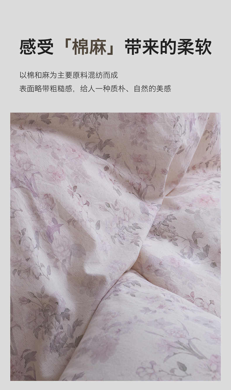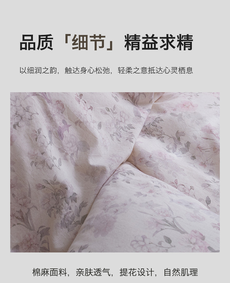 商品名称:久典家居 2026新款A类棉麻数码印花四件套 田园花语