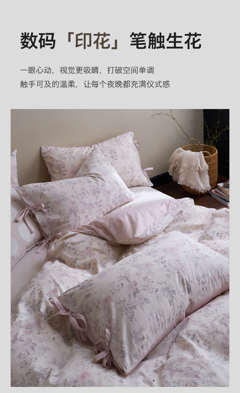 久典家居 2026新款A类棉麻数码印花四件套 田园花语