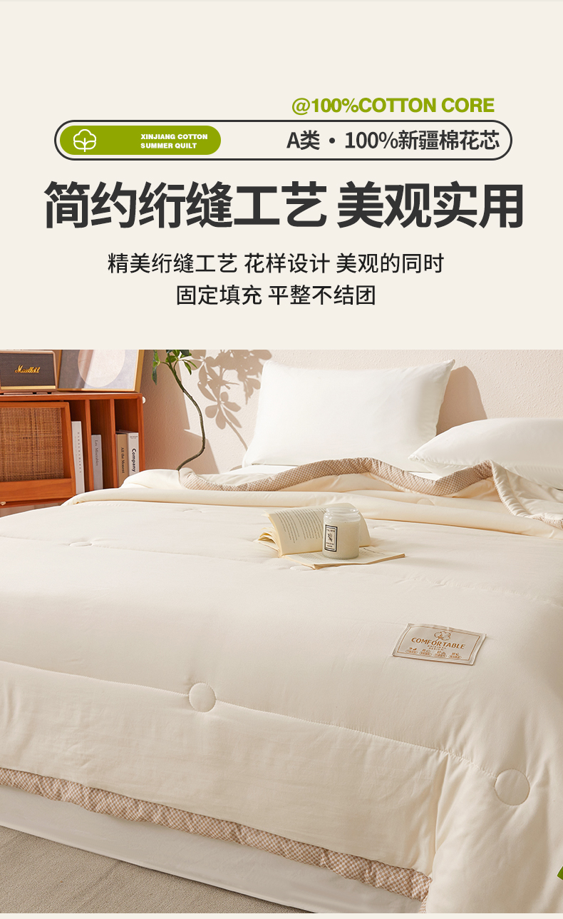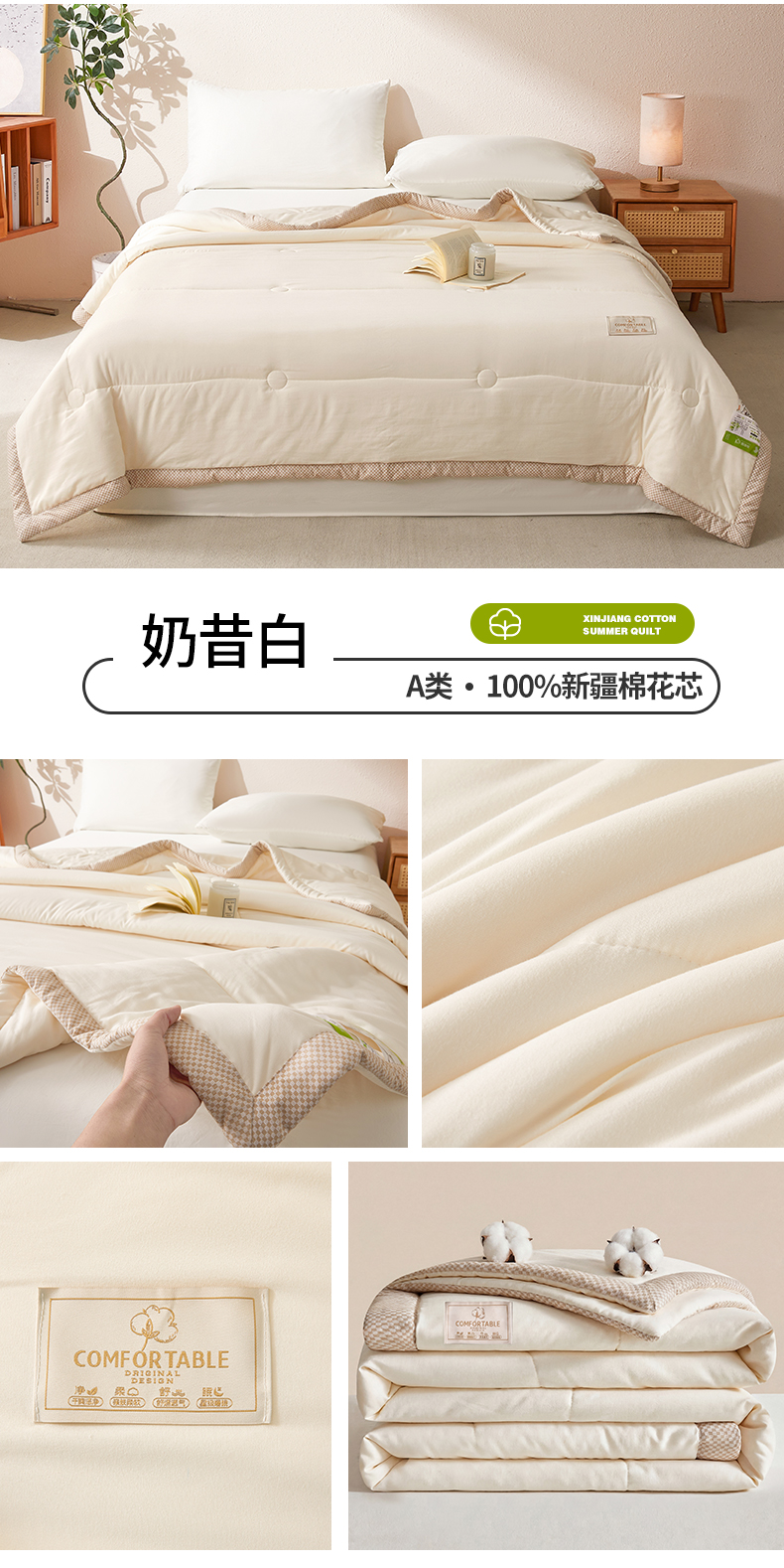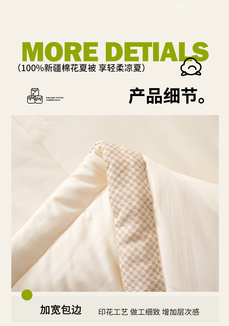 被子 > 夏被 > 罗布斯 2026新款高克重纯色简约风小清新花卉风水洗棉空调被夏被100%新疆棉花夏凉被(买家秀加微) 卡其