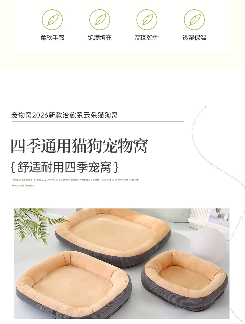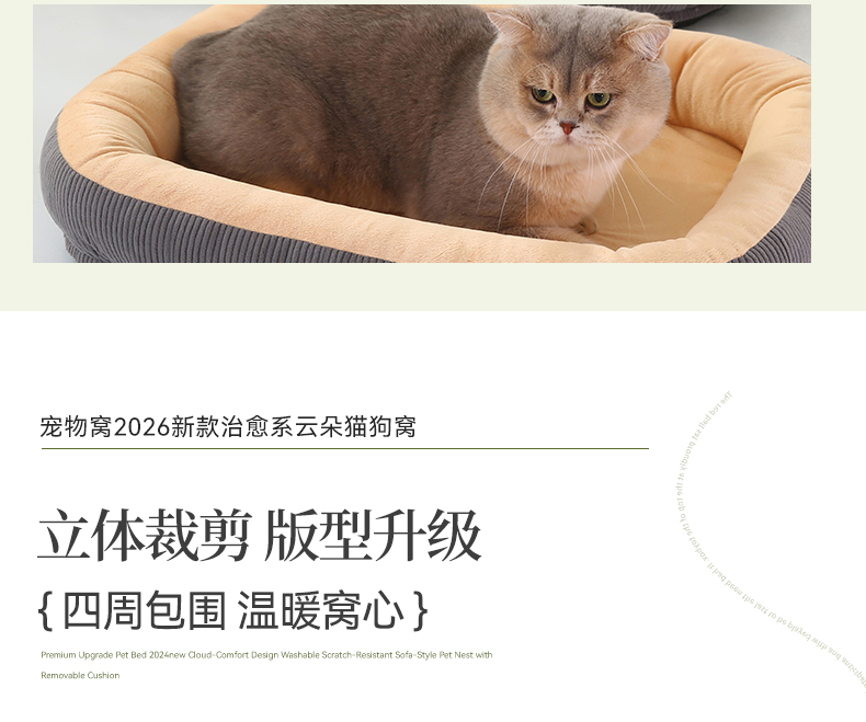 商品名称:永光家居 2026新款灯芯绒宠物窝底座可拆卸猫窝狗窝四季通用猫咪用品狗狗用品 组合图仅供展示-不可下单 40x50cm