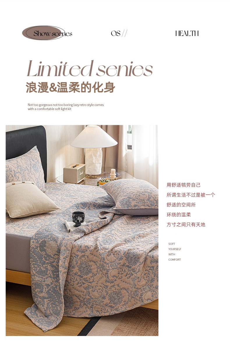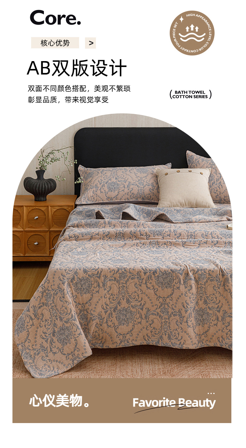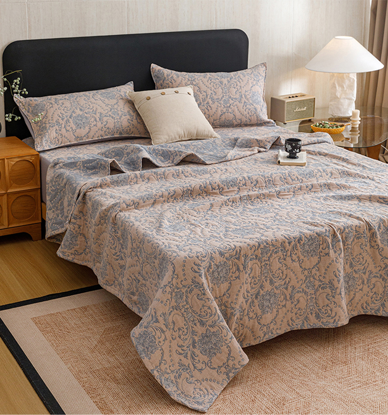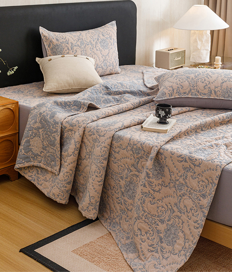 当前位置: 91家纺网 > 商品网购 > 床品套件 > 四件套 > 夏被四件套 > 悦然毛巾被 2026新款全棉三层纱加厚夏被四件套毛巾床笠盖毯毛毯枕套夏凉被空调被 欧韵