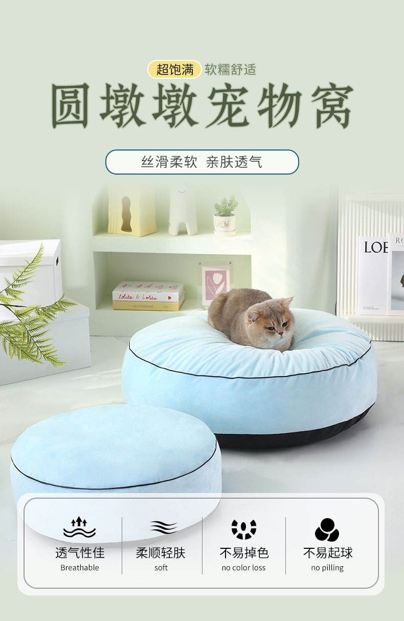 商品名称:永光家居 2026新款圆墩墩宠物窝可拆卸猫窝狗窝四季通用猫咪用品狗狗用品 蓝色 50x50x15cm