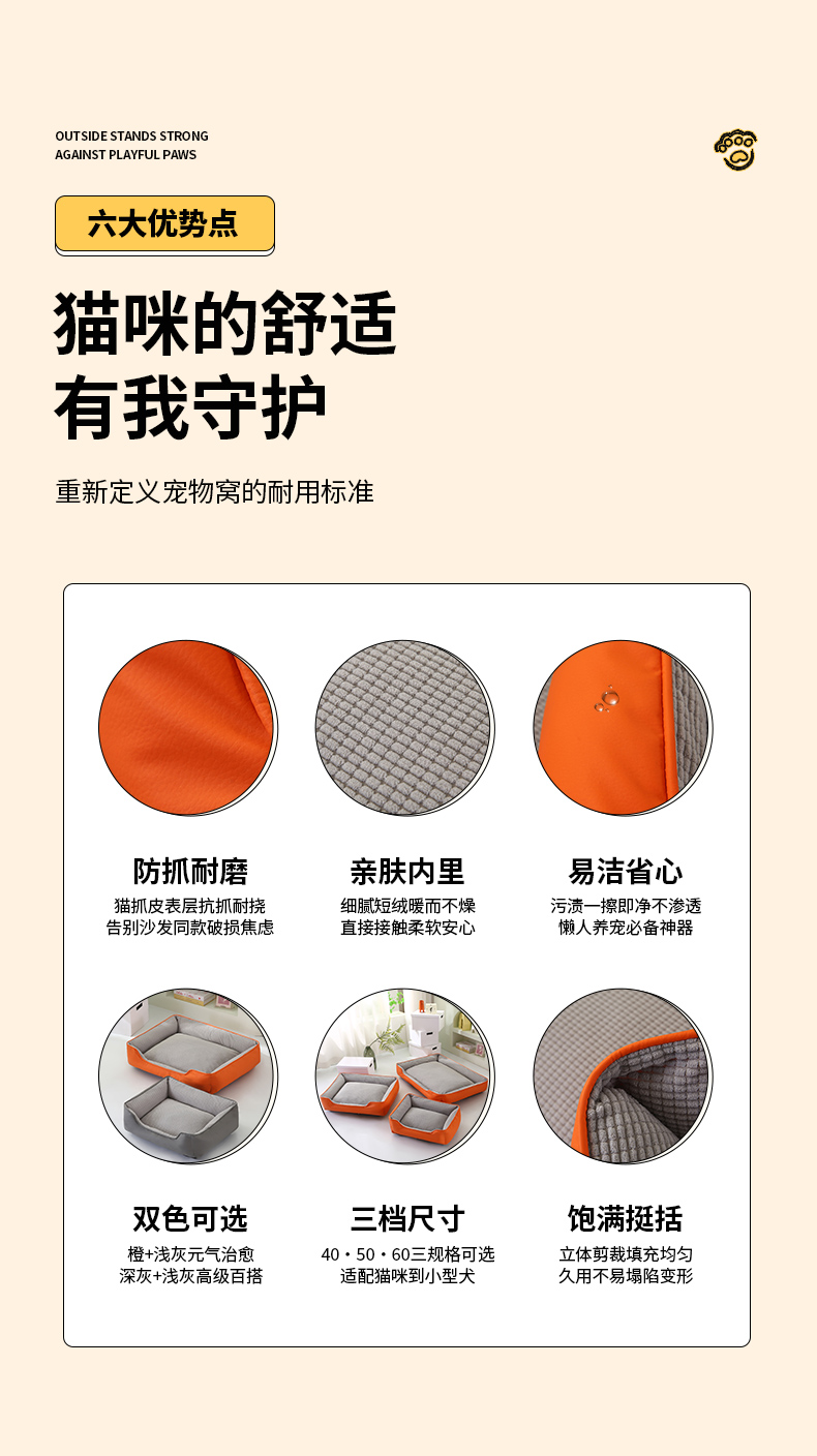 (总)永光家居 2026新款猫抓皮宠物窝可拆卸猫窝狗窝四季通用猫咪用品狗狗用品,橙 40x50cm,深灰 40x50cm,组合图仅供展示-不可下单 40x50cm,橙 50x60cm,深灰 50x60cm,组合图仅供展示-不可下单 50x60cm,橙 60x80cm,深灰 60x80cm,组合图仅供展示-不可下单 60x80cm
