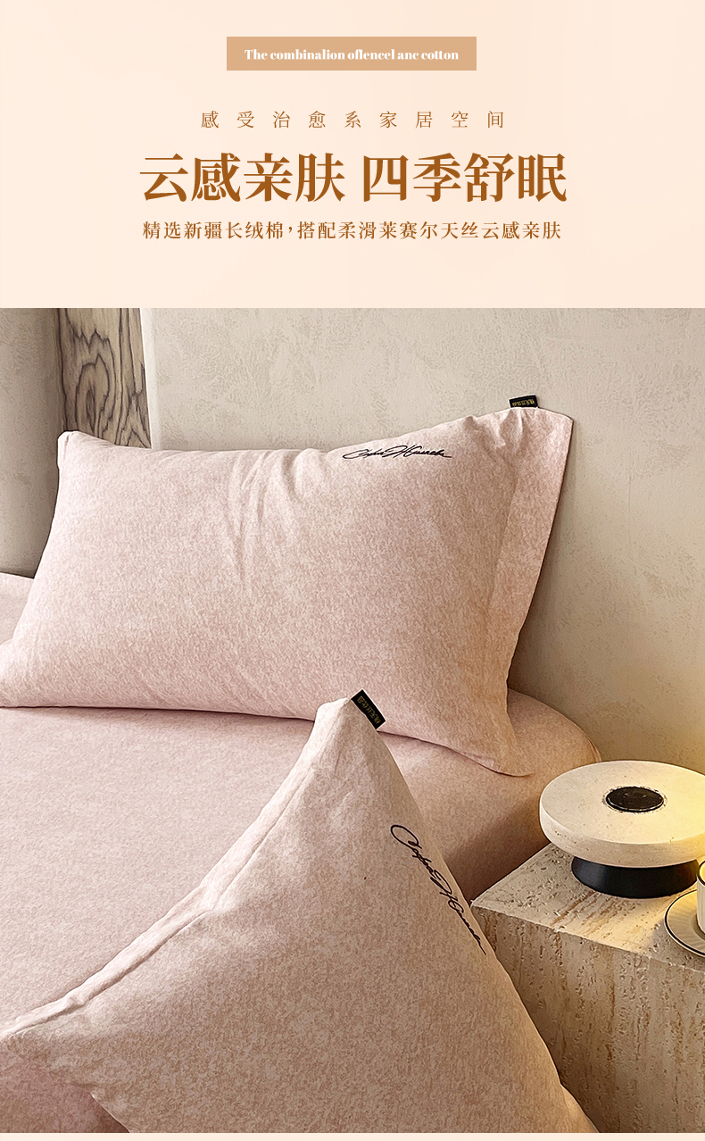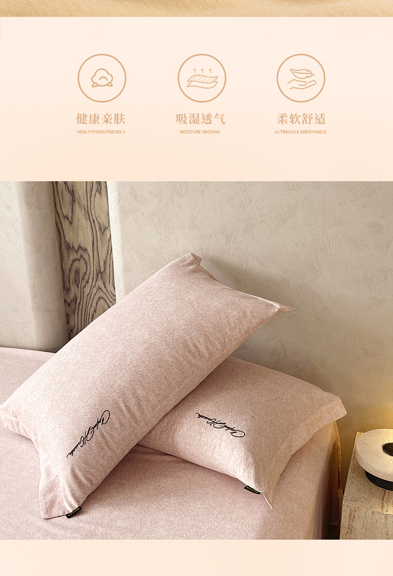 商品名称:春皖家纺 2026春夏新款天丝棉刺绣单枕套 枕套单件 曼妮-贝壳色