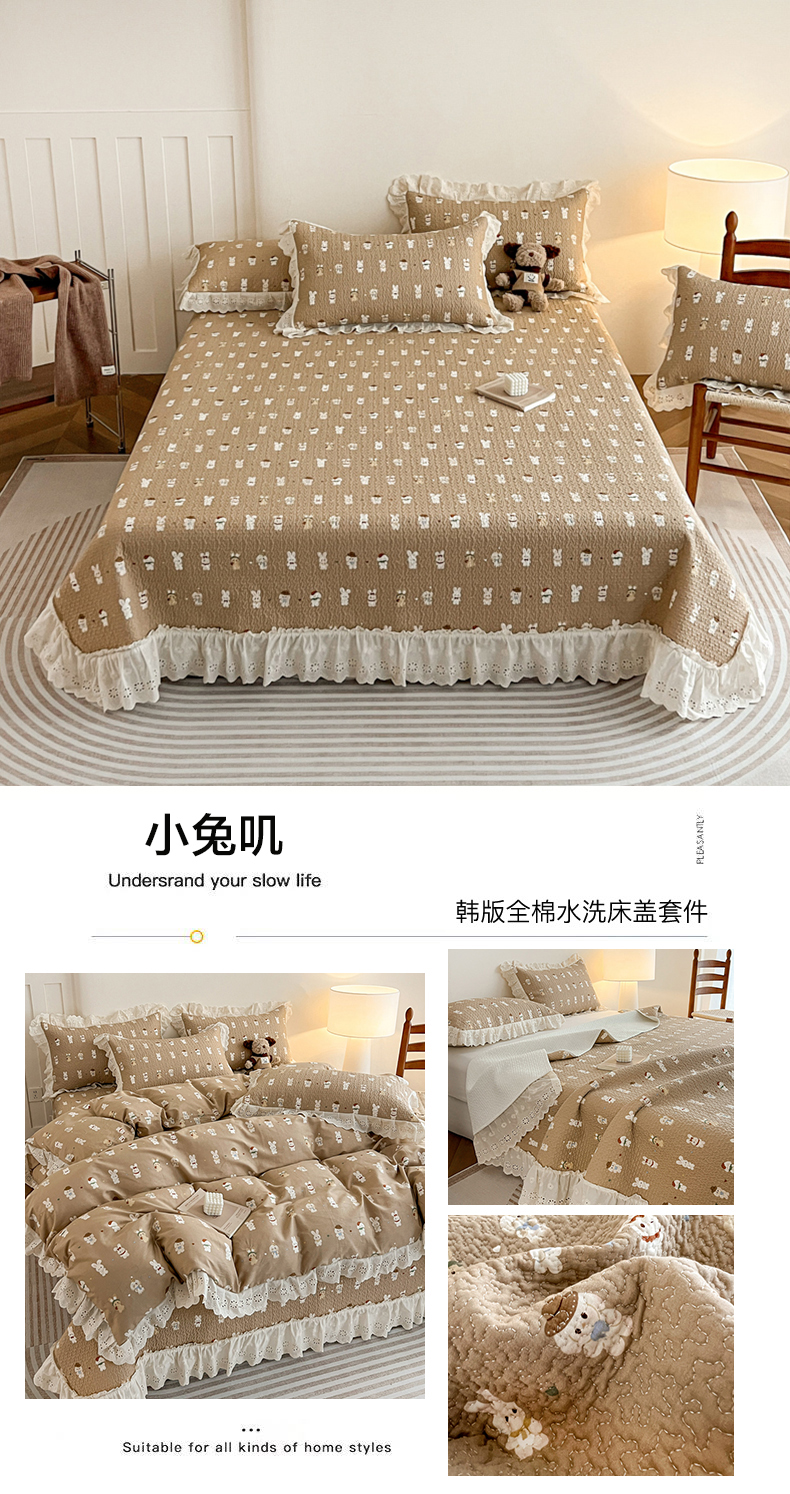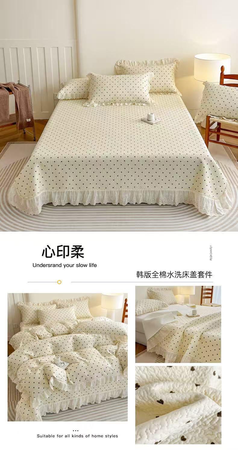 当前位置: 91家纺网 > 商品网购 > 床品套件 > 四件套 > 全棉普通四件套 > 羽爱家纺 2026新款全棉水洗韩版花边床盖四件套 花间春彩