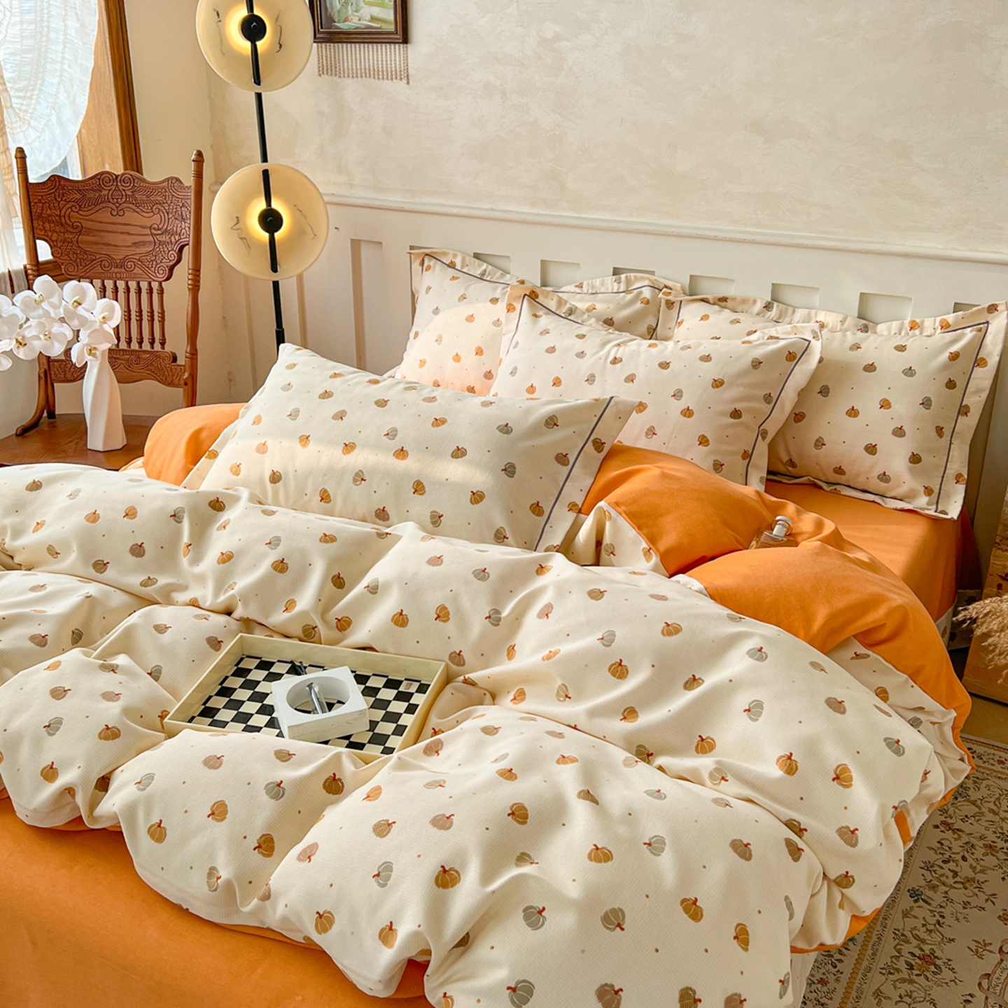 简约家纺 2025新款全棉磨毛印花单品床单 贝贝南瓜-米