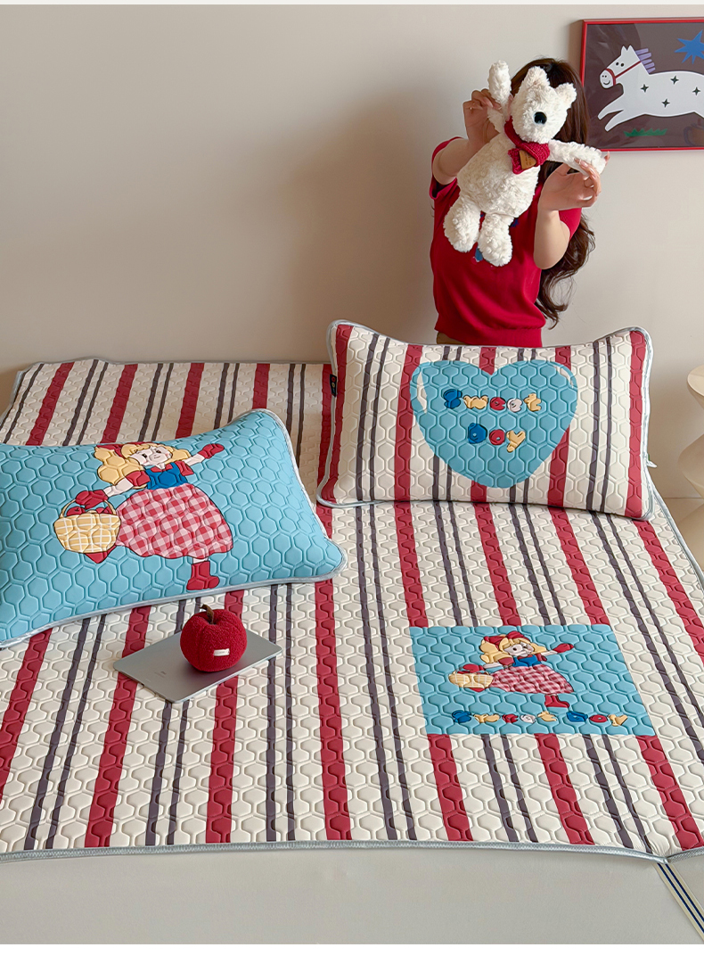 商品名称:RYB红黄兰 2026新款ins设计师原创款大版冰皮凉感水洗乳胶加厚6mm凉席三件套 萝莉心心