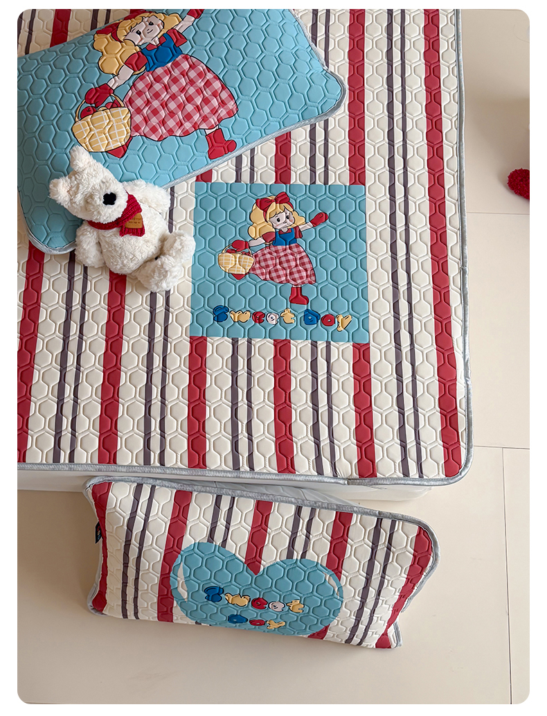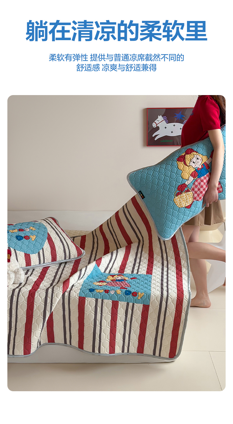 (总)RYB红黄兰 2026新款ins设计师原创款大版冰皮凉感水洗乳胶加厚6mm凉席三件套,萝莉心心,爆米花先生,彩色喵星人,蓝条哈吉米,小白的毛线,小黑的咖啡,小熊和邦尼,波点熊仔,狗狗日记,红格猫咪,咖啡西高地,马戏团小兔,美式腊肠狗,苹果小黑猫,沙发小狗,泰迪小窝