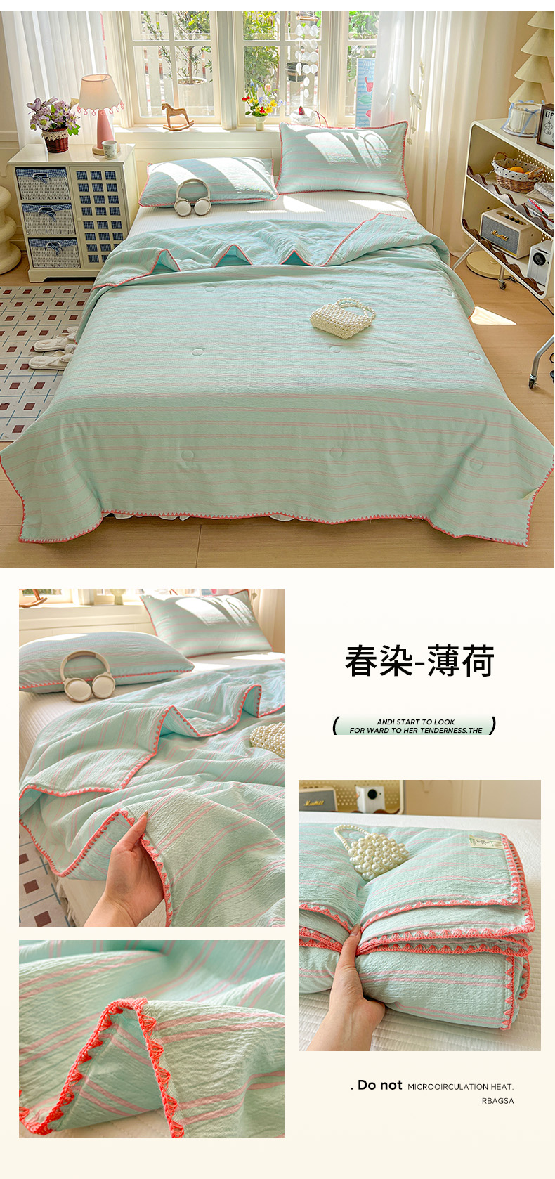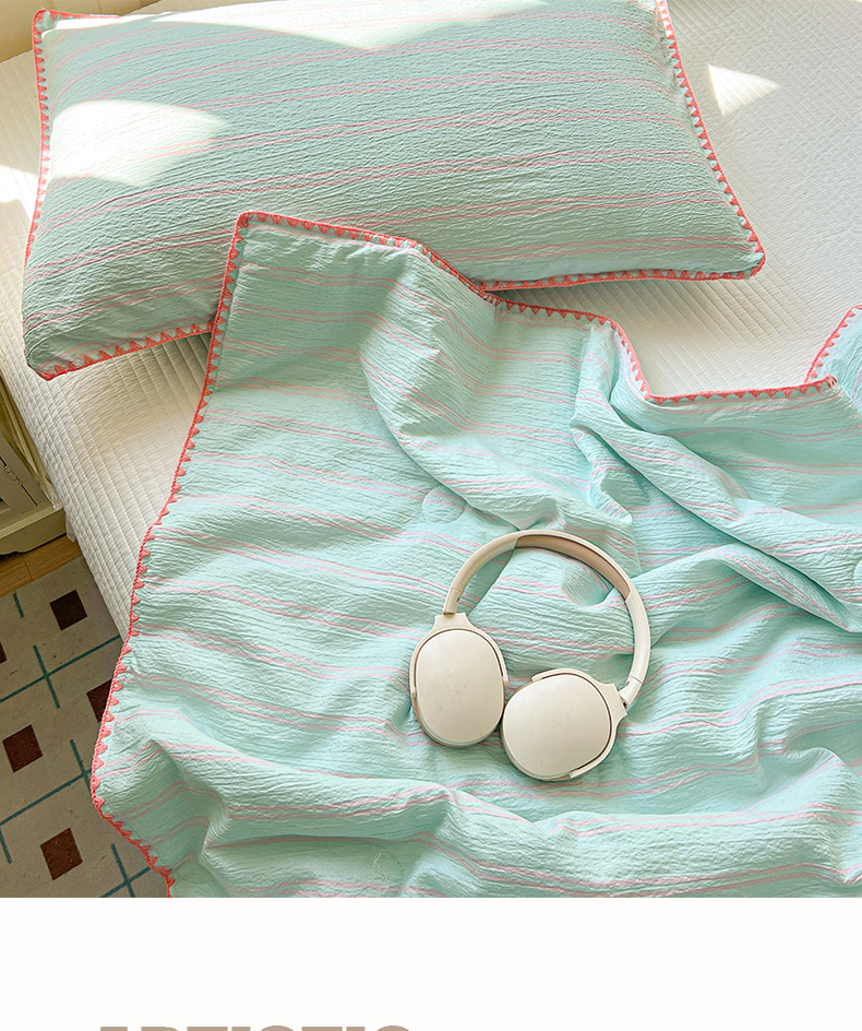 商品名称:鑫利来家纺 2026新款日系多巴胺皱皱纱贝壳绣夏被夏凉被空调被 春染-薄荷