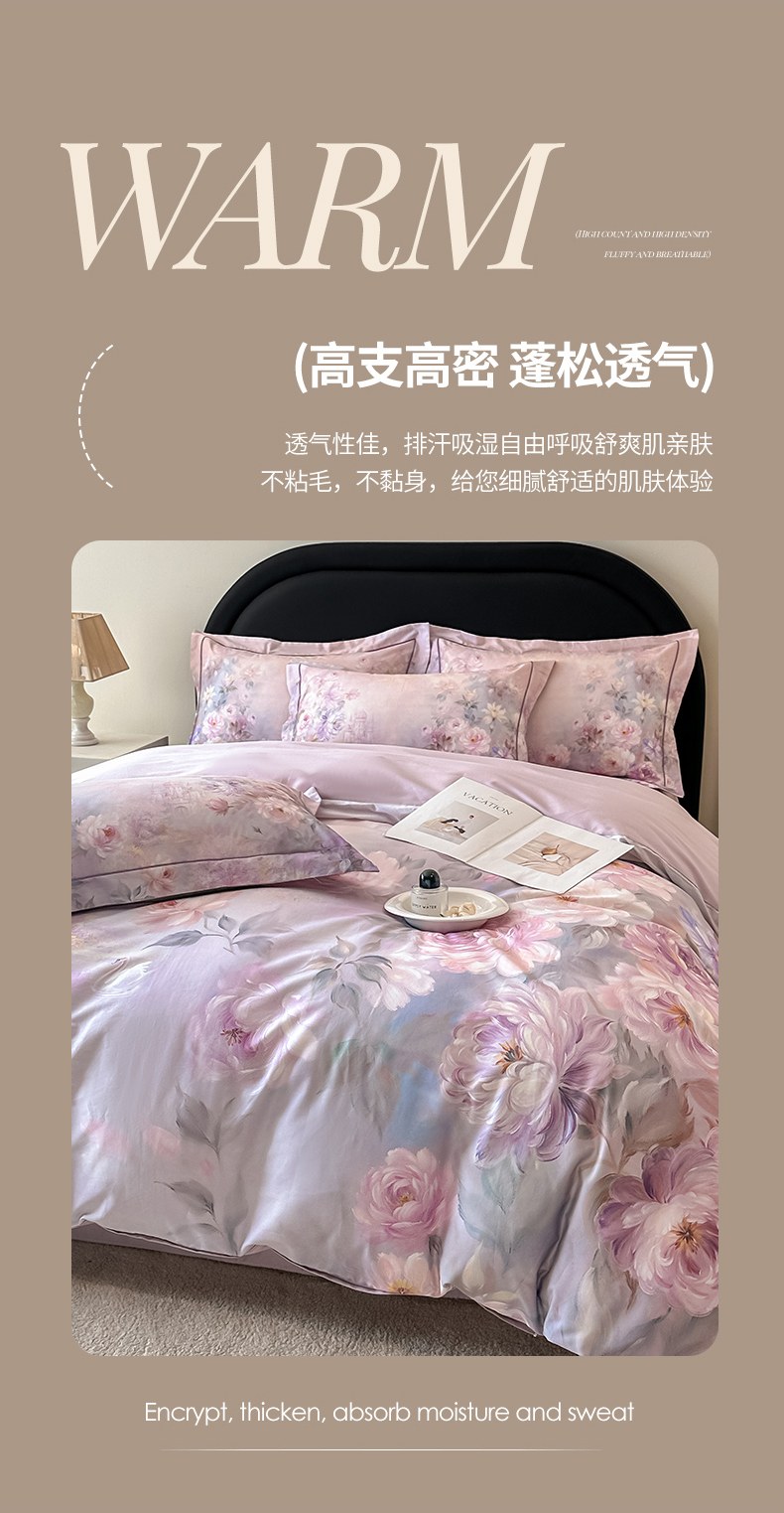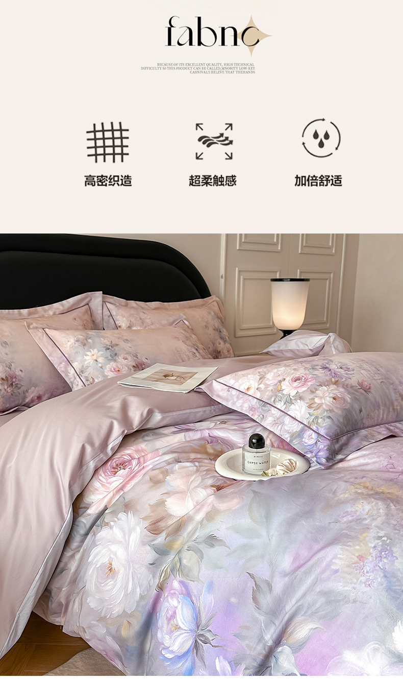 (总)启航家居 2025新款全棉铂金棉数码印花四件套,风香花倦,花的嫁纱,洛香忆梦绿,暮云春树灰,翩若惊鸿粉,普罗旺斯紫,新塞纳舞曲红,新塞纳舞曲紫