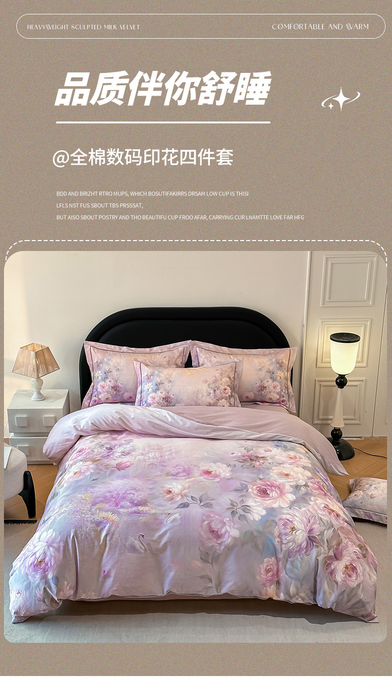 启航家居 2026新款全棉纯棉数码印花四件套(控价198) 斐色紫