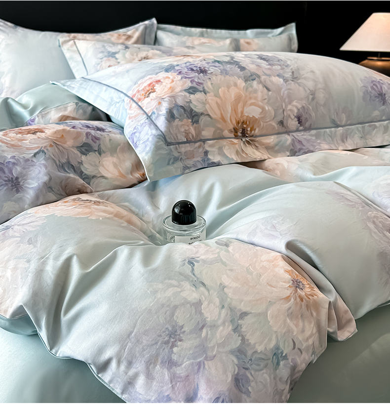 (总)启航家居 2025新款全棉铂金棉数码印花四件套,风香花倦,花的嫁纱,洛香忆梦绿,暮云春树灰,翩若惊鸿粉,普罗旺斯紫,新塞纳舞曲红,新塞纳舞曲紫