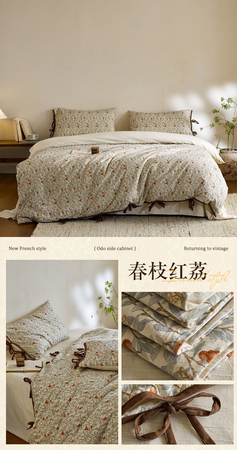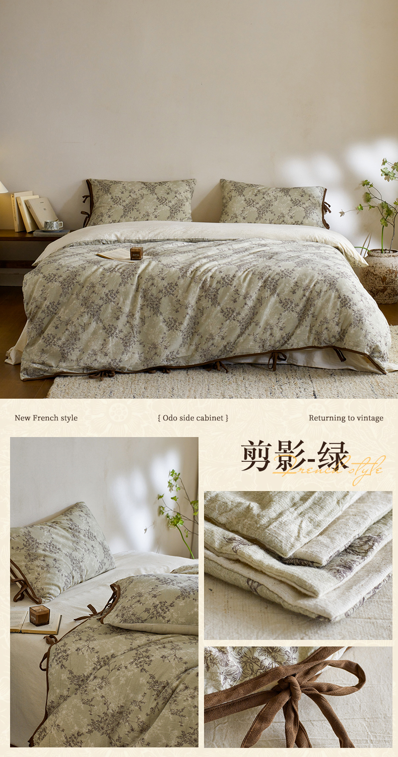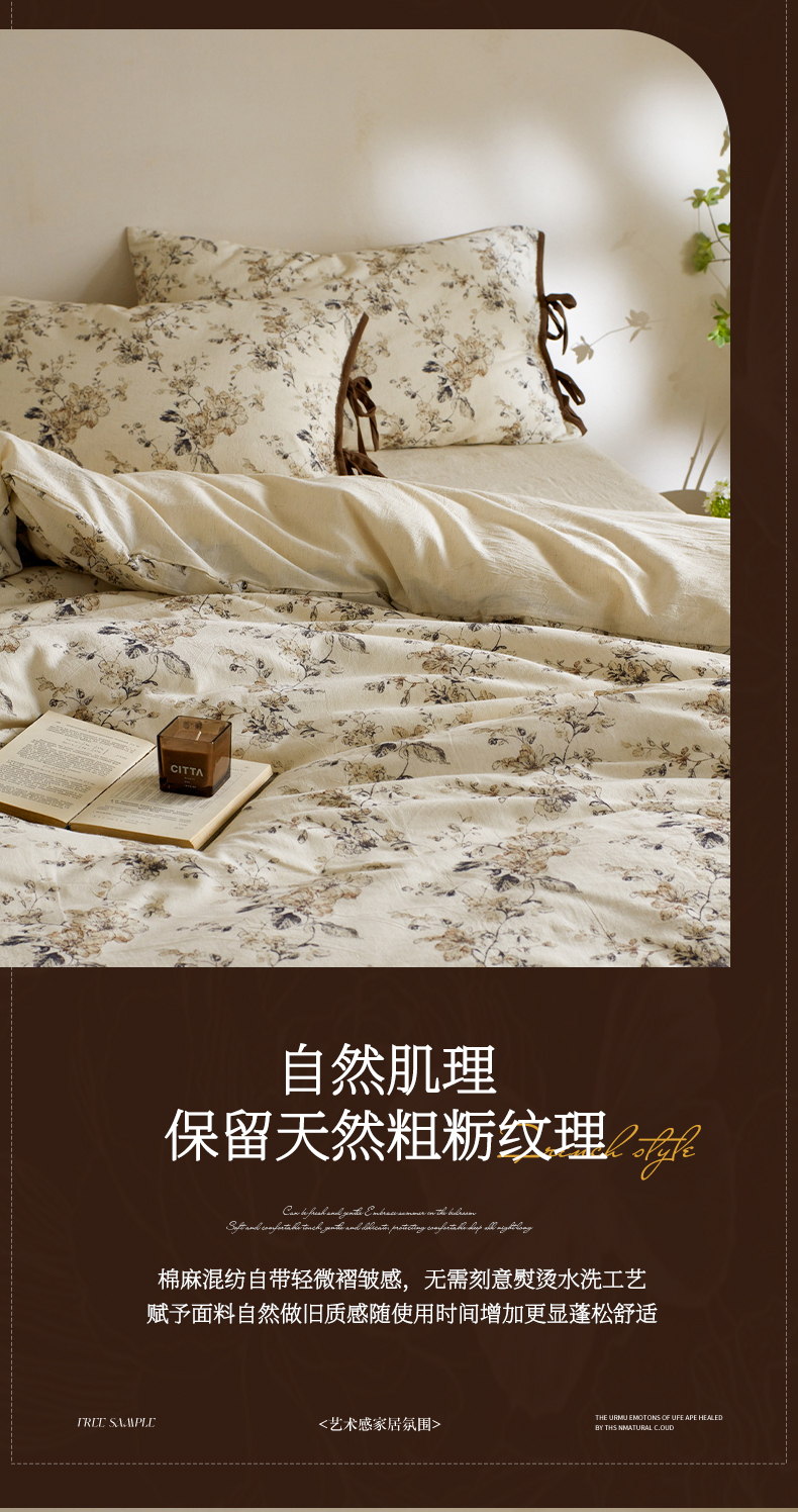 (总)由丽家纺 2026新款法式复古风棉麻绑带款四件套,古韵繁花,春枝红荔,黑绒花,剪影-白,剪影-绿,绿野仙踪,千幻梦,秀丽春色,雅韵锦花