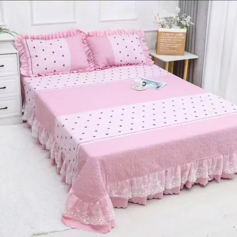 (总)彩亿家纺 2026春夏新品四季床盖泡芙棉双层纱蕾丝床裙加厚床单