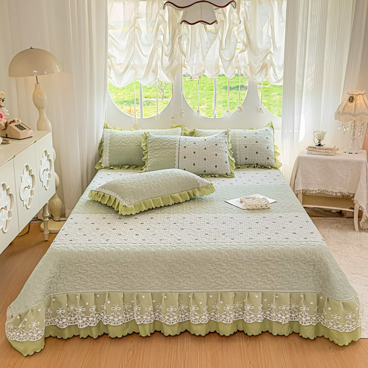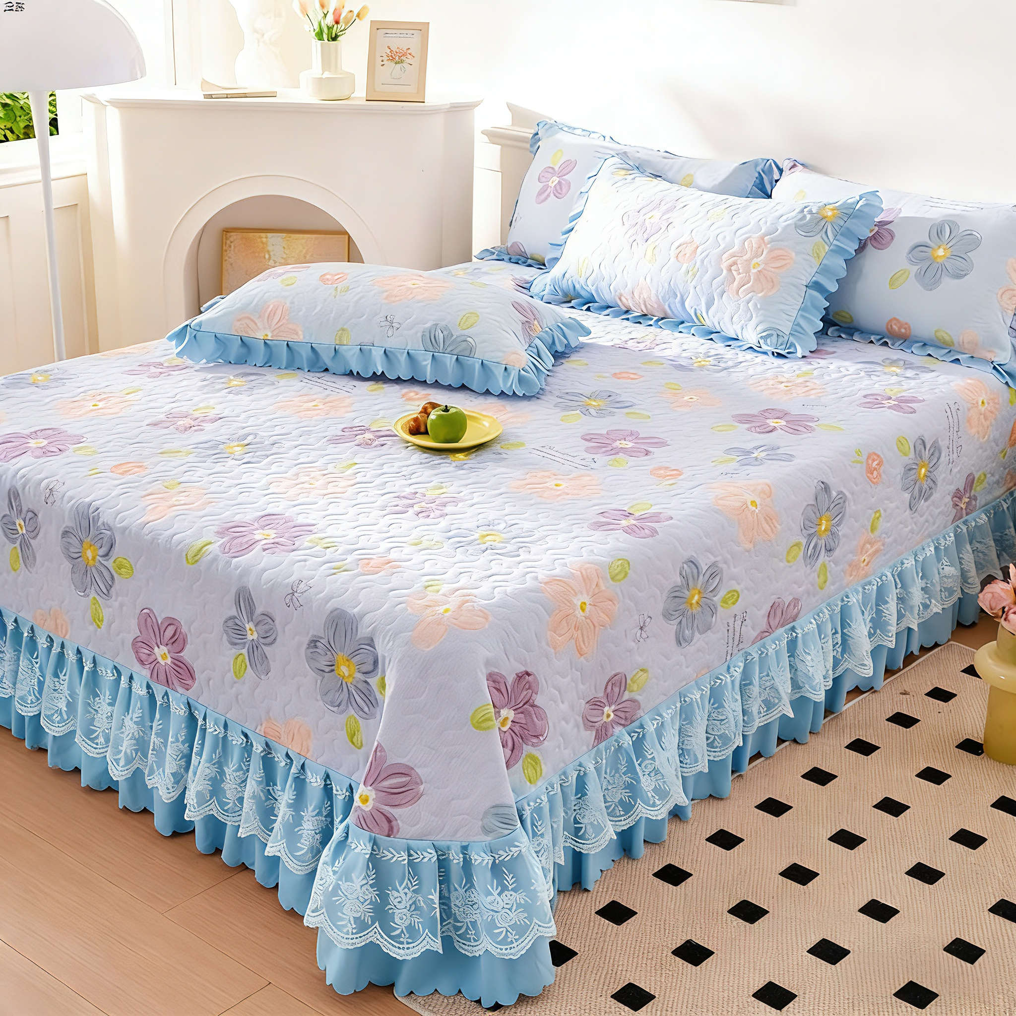 商品名称:(总)彩亿家纺 2026春夏新品四季床盖泡芙棉双层纱蕾丝床裙加厚床单