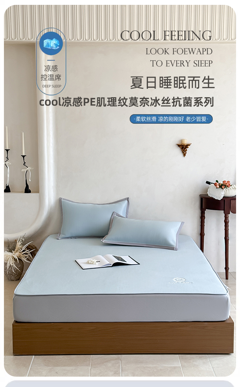 (总)席佬大 2026新款cool凉感PE肌理纹莫奈冰丝抗菌凉席席子系列,豆绿-平席款,浅紫-平席款,雾蓝-平席款,香槟金-平席款,云灰-平席款,豆绿-床笠款,浅紫-床笠款,雾蓝-床笠款,香槟色-床笠款,云灰-床笠款