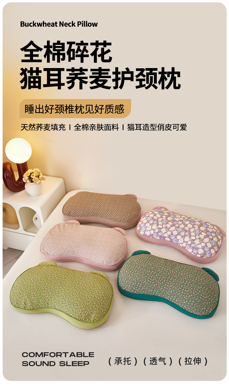 (总)梦叶草 2026新款全棉碎花猫耳荞麦枕,全棉碎花猫耳荞麦枕-粉色,全棉碎花猫耳荞麦枕-花海,全棉碎花猫耳荞麦枕-咖色,全棉碎花猫耳荞麦枕-绿色,全棉碎花猫耳荞麦枕-深蓝