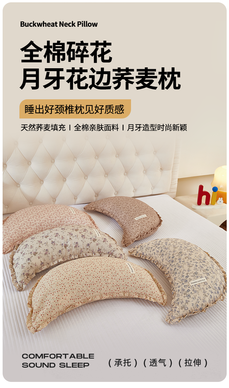 (总)梦叶草 2026新款全棉碎花月牙花边荞麦枕,全棉碎花月牙荞麦枕-碎花粉,全棉碎花月牙荞麦枕-碎花黄,全棉碎花月牙荞麦枕-碎花咖,全棉碎花月牙荞麦枕-碎花蓝,全棉碎花月牙荞麦枕-碎花紫