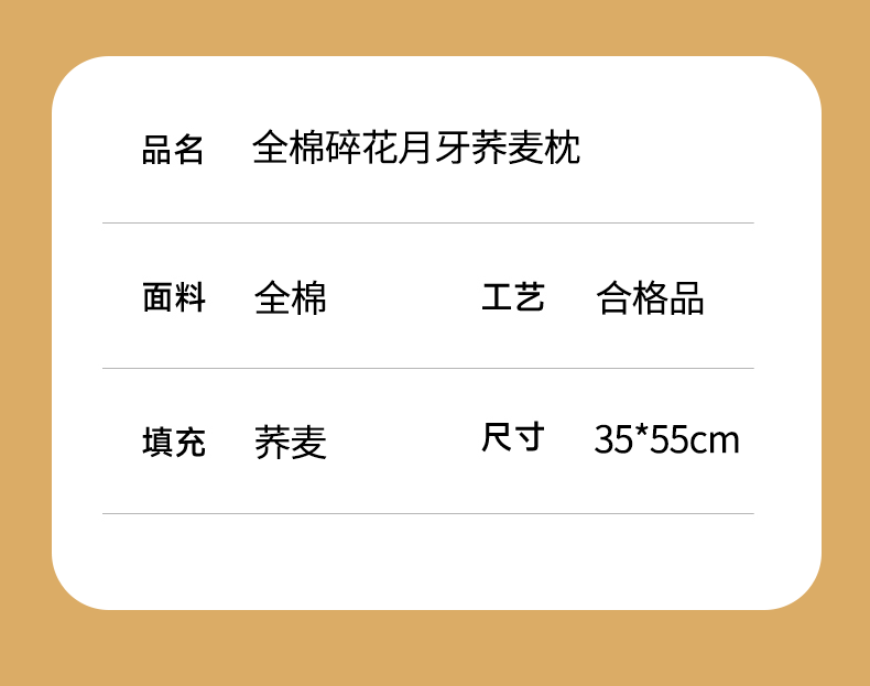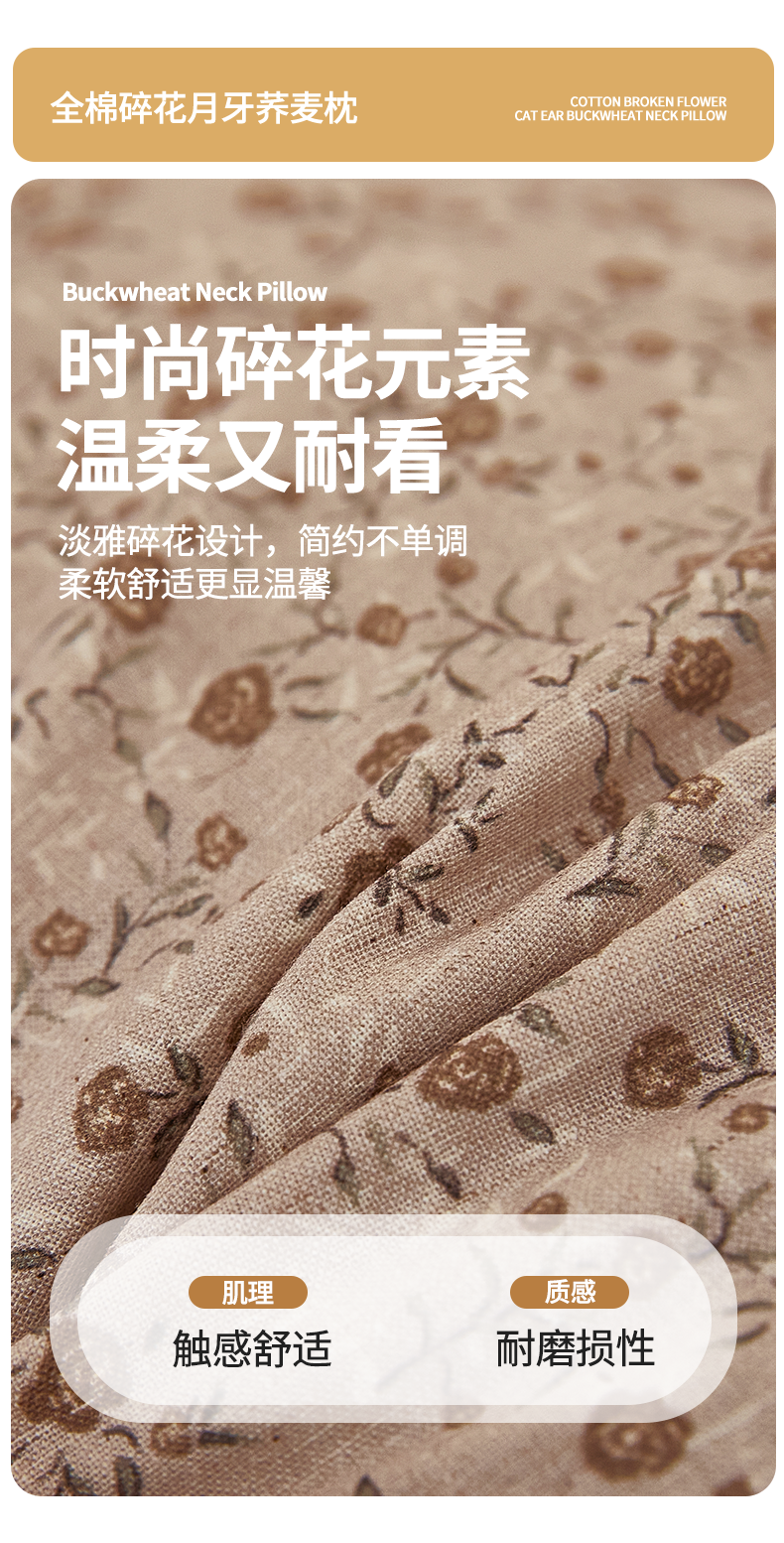 商品名称:梦叶草 2026新款全棉碎花月牙花边荞麦枕 全棉碎花月牙荞麦枕-碎花咖