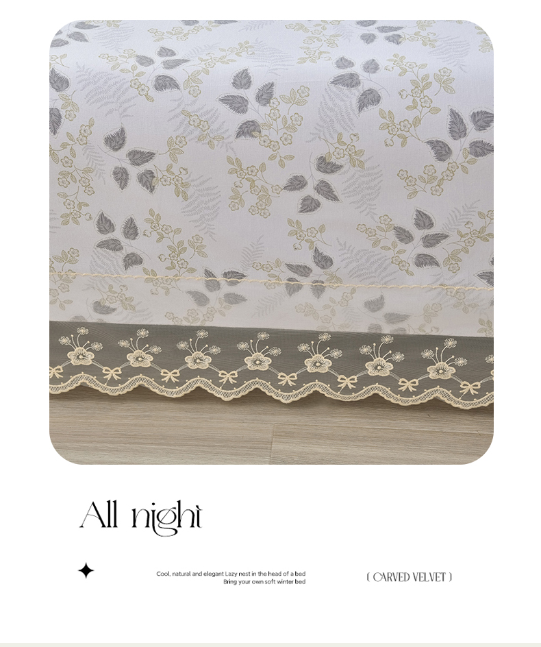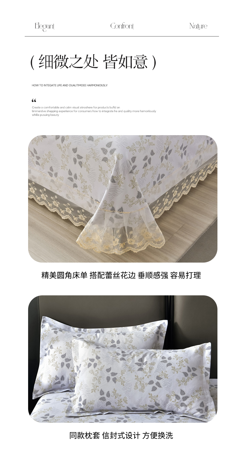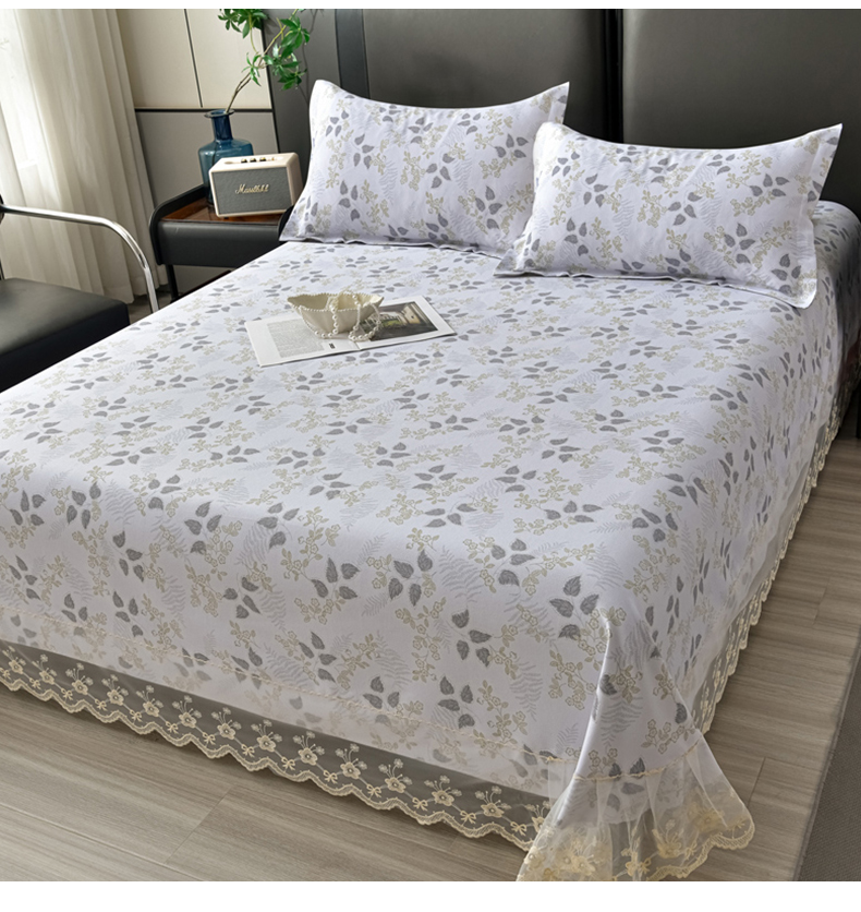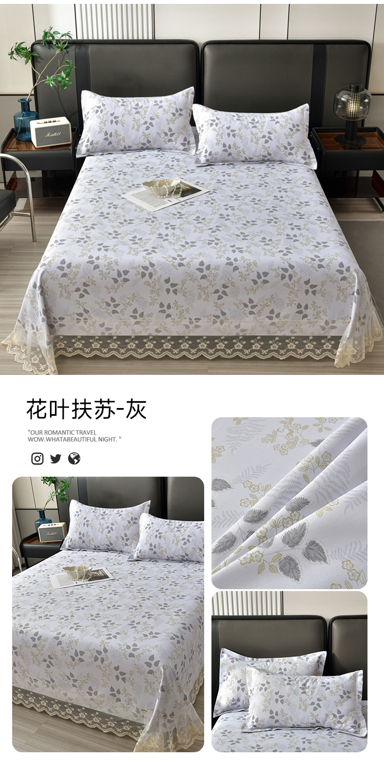 商品名称:星窝家纺 2026新款花边老粗布凉席三件套 花叶扶苏-灰