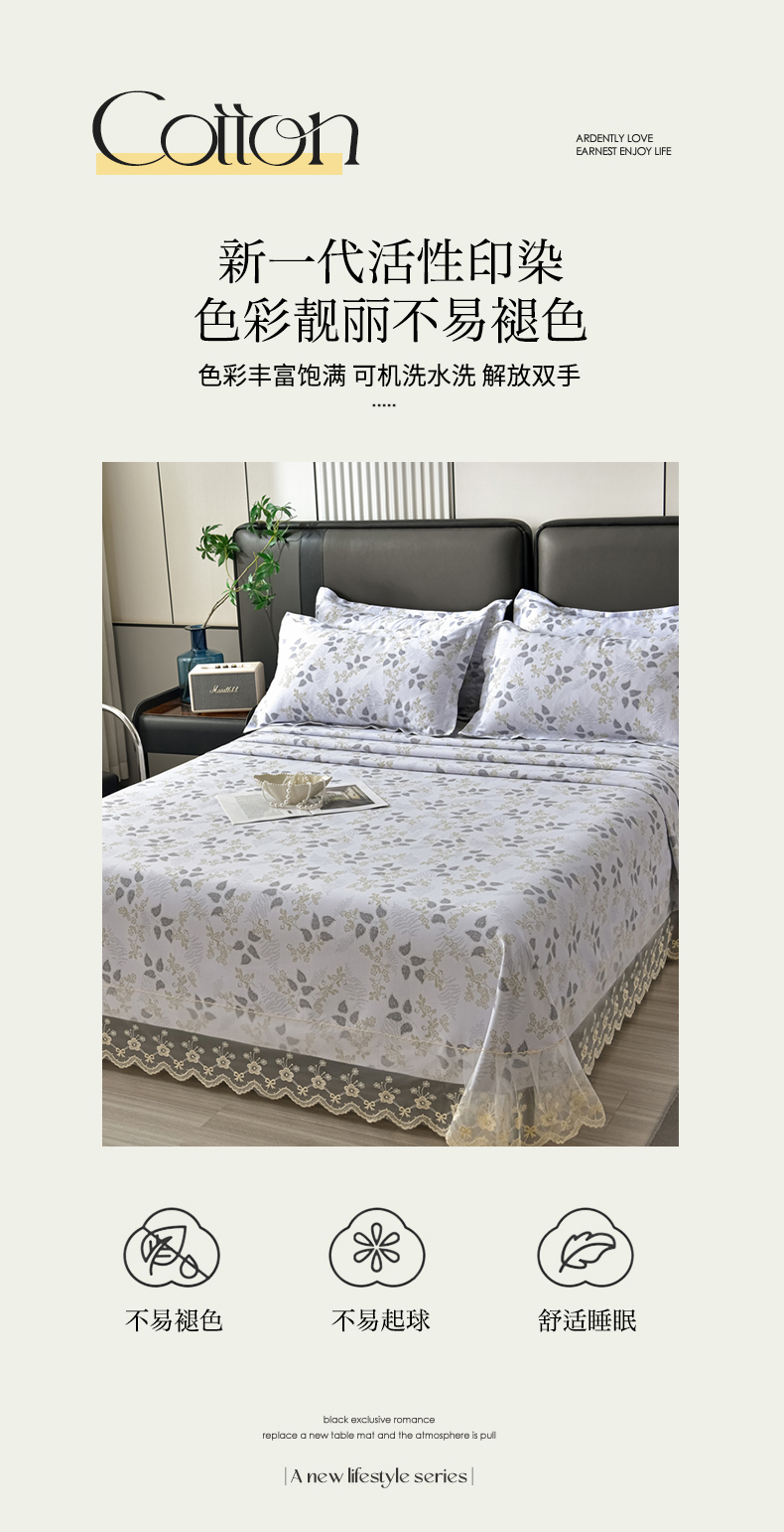 (总)星窝家纺 2025新款水洗棉花边床裙式多功能床盖三件套,经典豆绿,经典粉色,经典灰色,经典橘色,经典蓝色,经典奶白,经典紫色