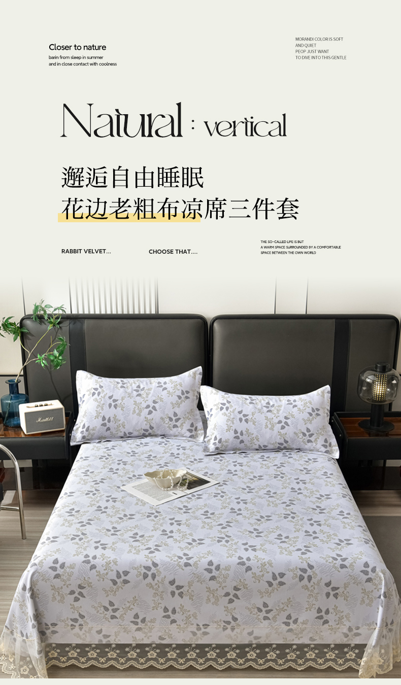 (总)星窝家纺 2026新款花边老粗布凉席三件套,半亩花田,花暖迎春,沁风花巷,浅灰雅格,山樱漫语-灰,绮梦韵彩,嘉百丽-绿,宛若黎光-绿,花叶扶苏-绿,花叶扶苏-灰,青春活力-蓝,微澜,春旭日-灰,香颂花影-绿,春风里-绿,初恋心语,星辰-灰,潮流字母-灰,半夏花语,若瑄,烟紫花影,阳春之歌,樱桃格-绿