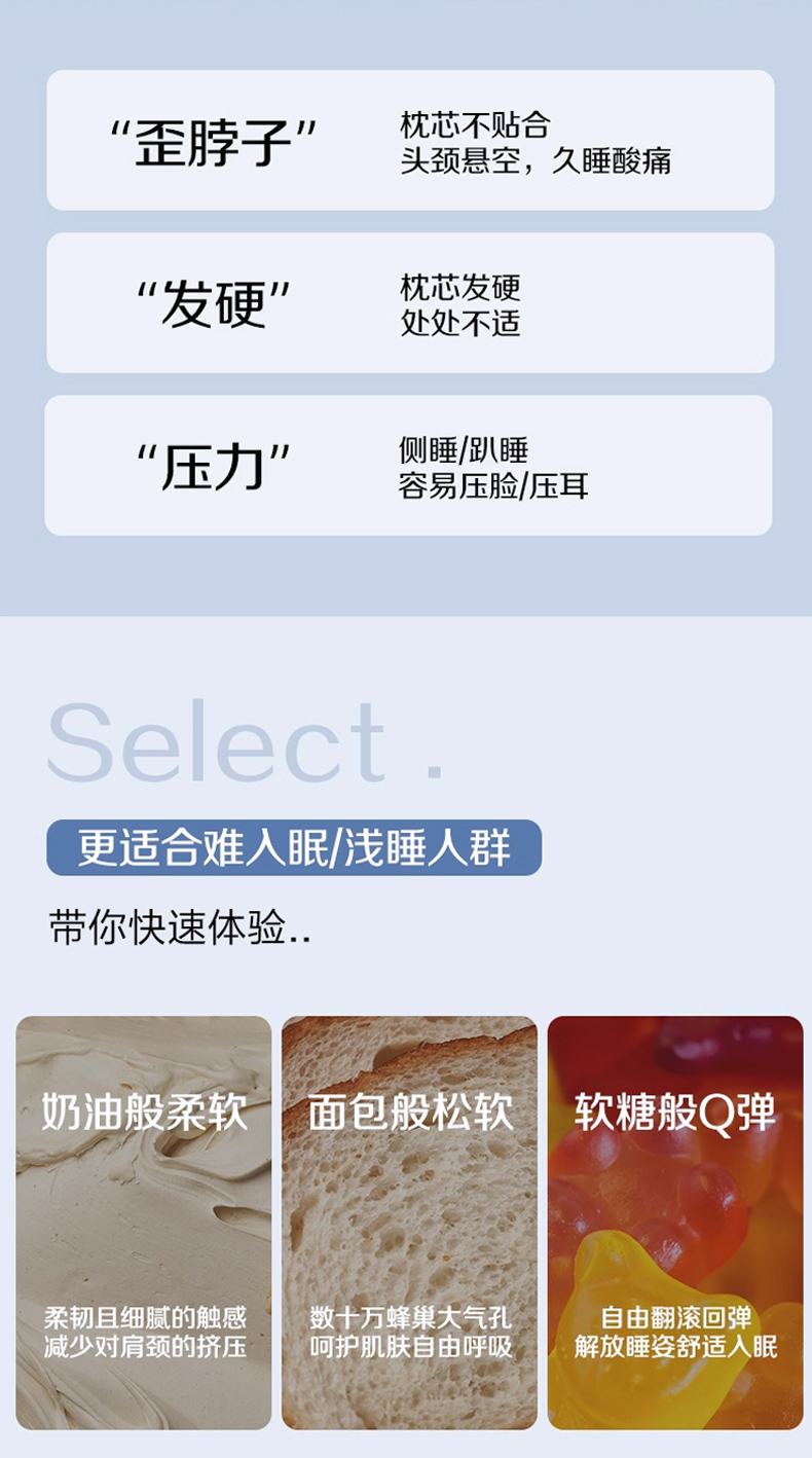 (总)土多多枕芯 2026年新款云乎乎平板面包冰丝华夫格可爱学生冰感凉感记忆枕,软乎乎-粉,软乎乎-灰,软乎乎-蓝,软乎乎-紫,组合图