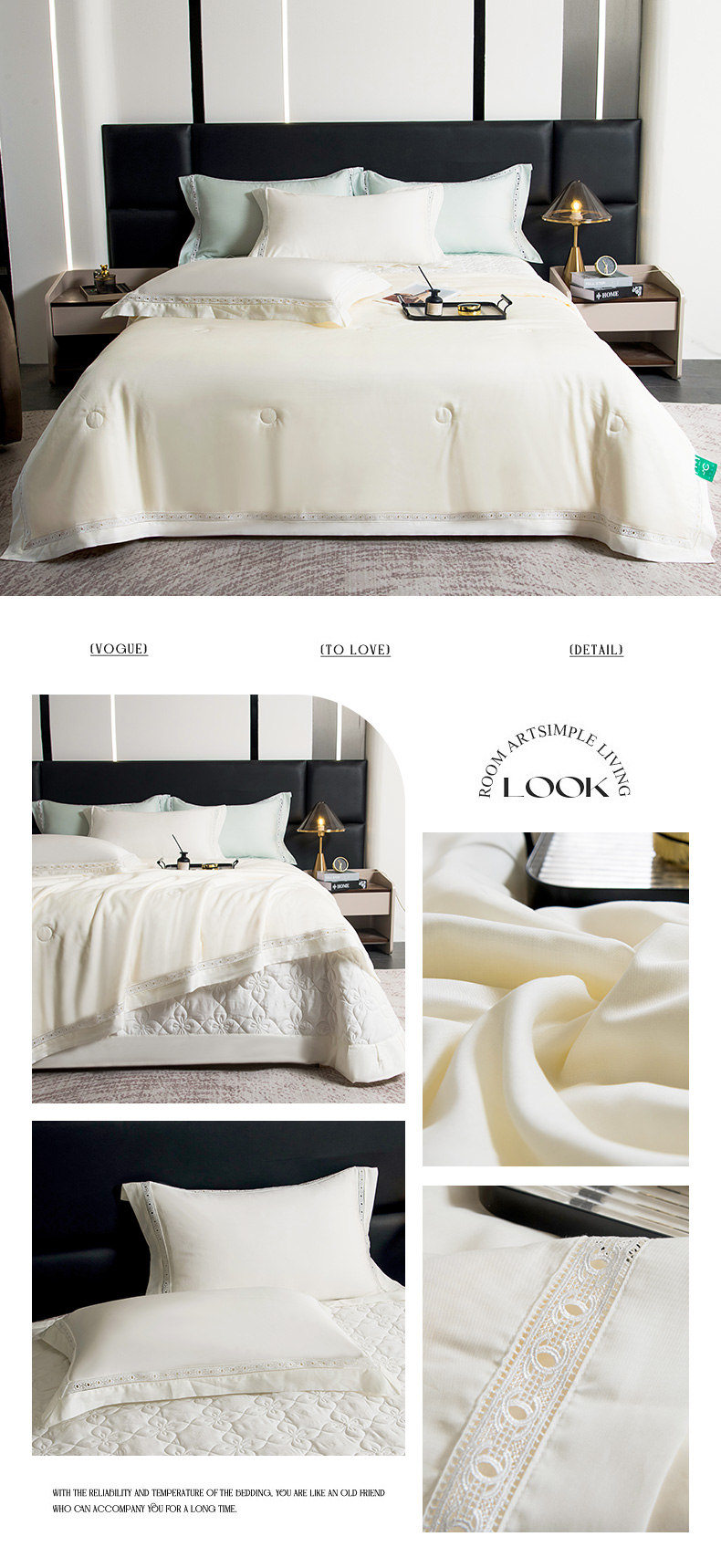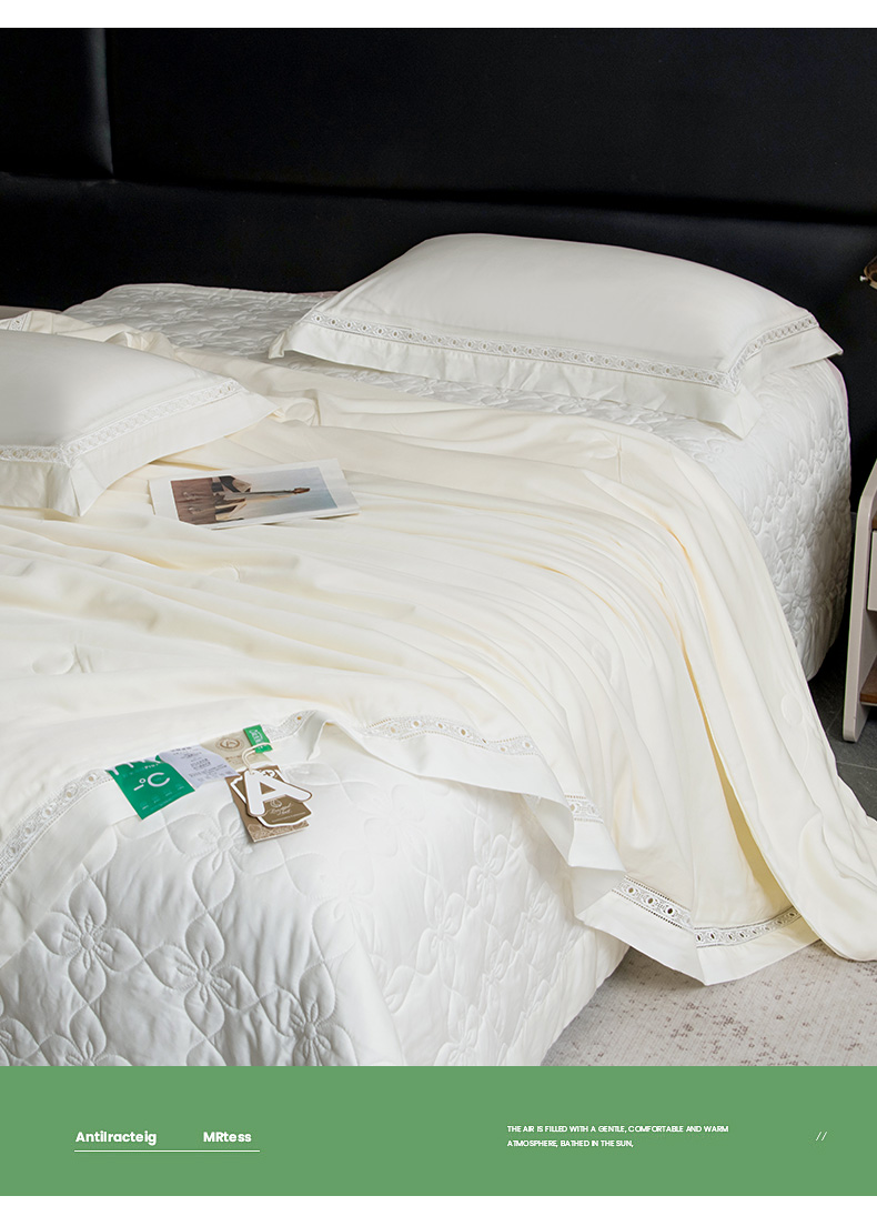 商品名称:三俏家纺 2026新款60支兰精天丝A类镂空床盖款夏被四件套纯色20%大豆蛋白【包质检】 奶芙白