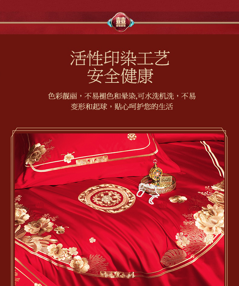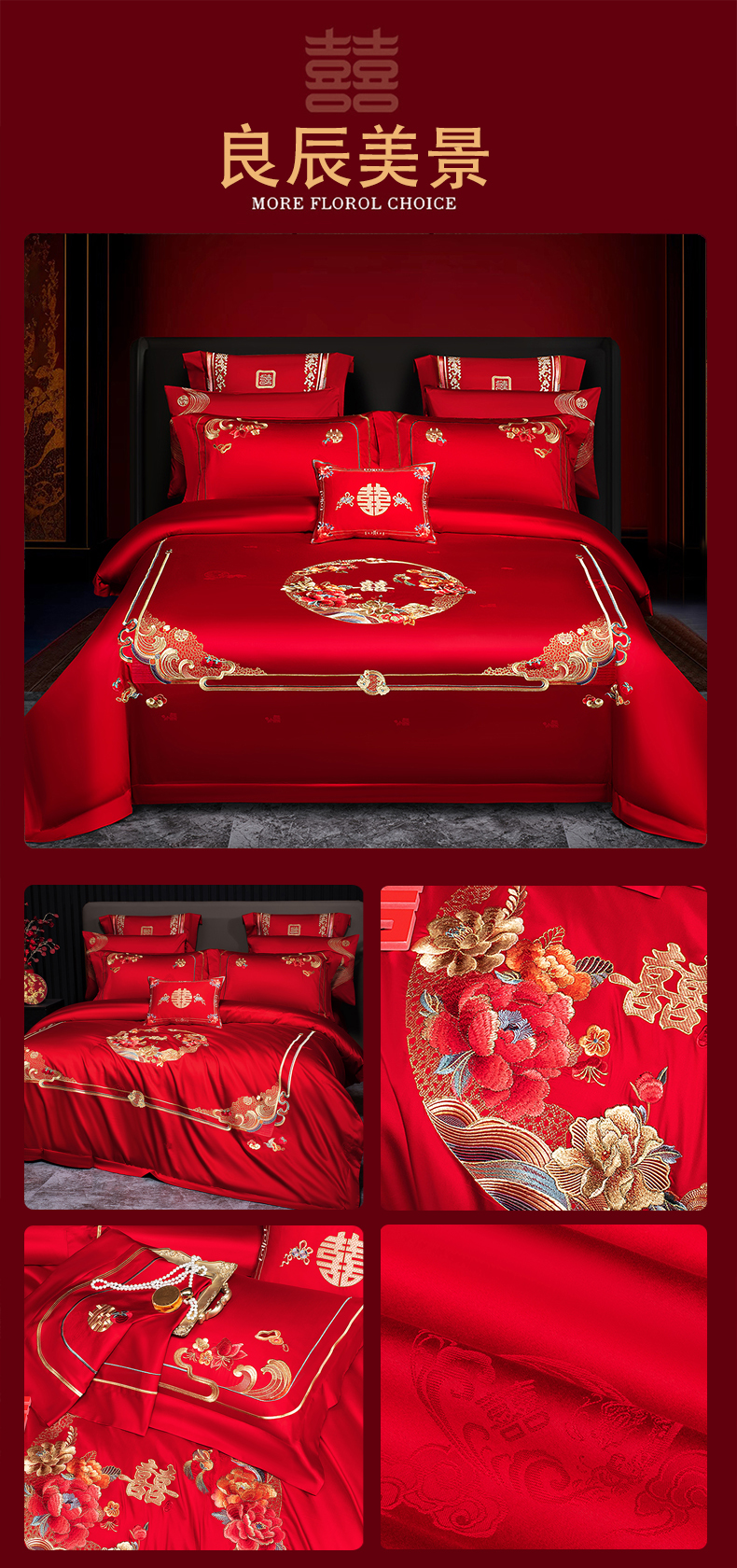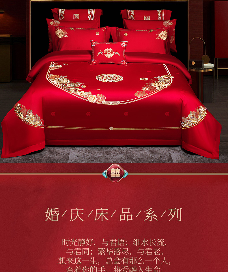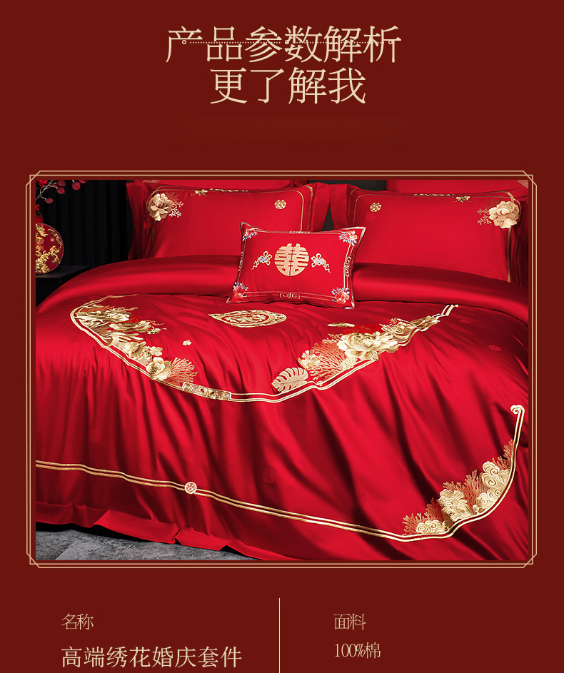 当前位置: 91家纺网 > 商品网购 > 床品套件 > 四件套 > 婚庆四件套 > 蒂爵 2026年重绣性价比款长绒棉提花全棉纯棉绣花婚庆四件套多件套大红色刺绣结床上用品 海韵丹姿金
