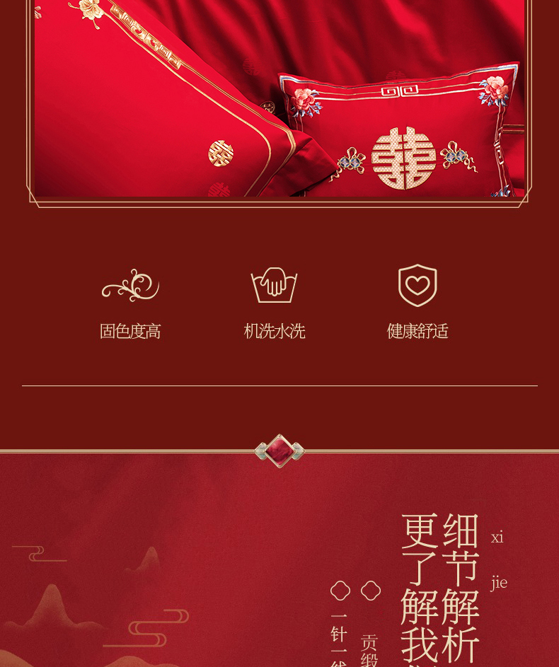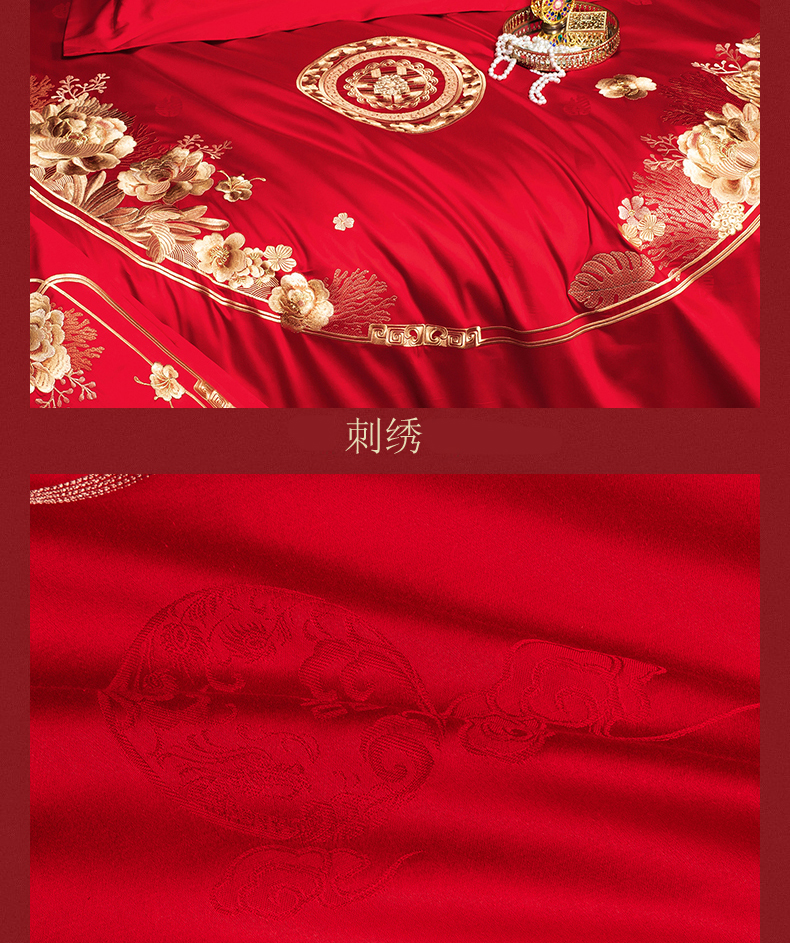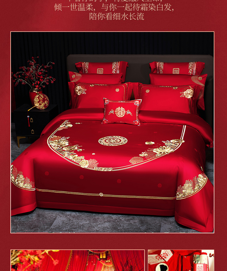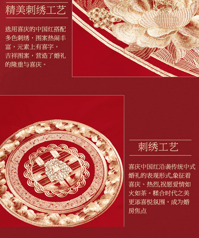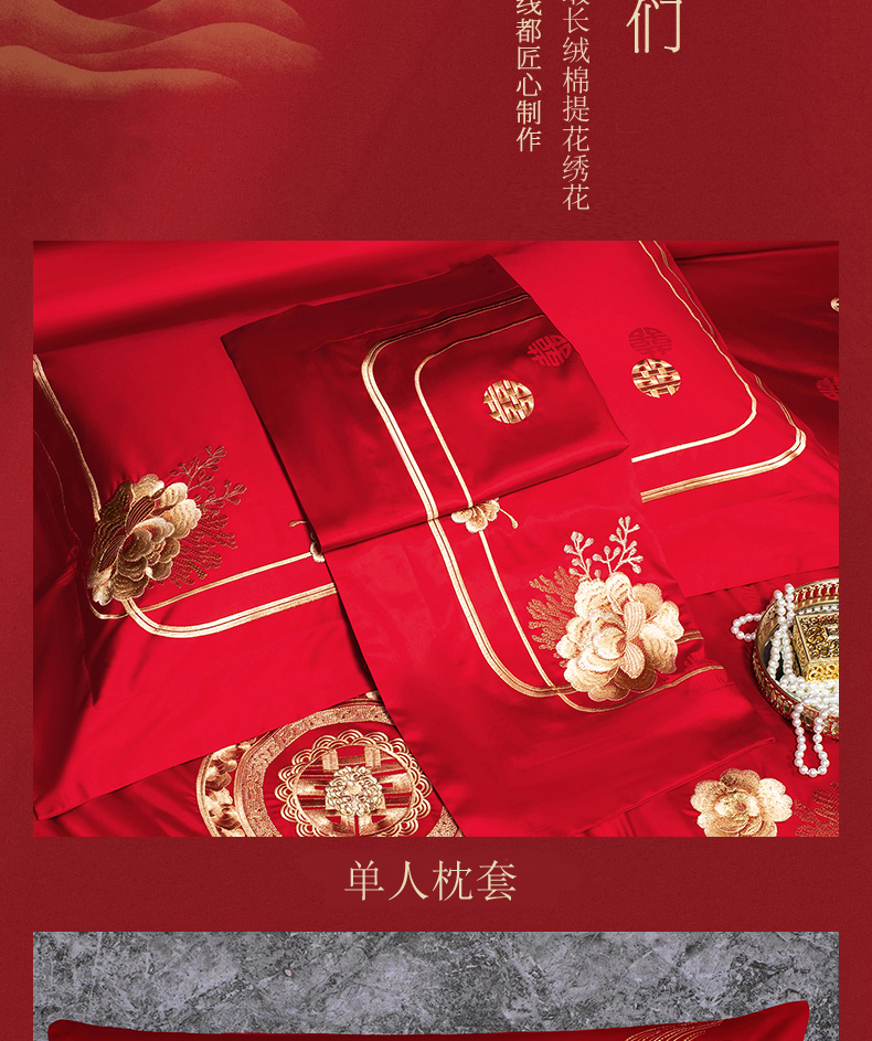 当前位置: 91家纺网 > 商品网购 > 床品套件 > 四件套 > 婚庆四件套 > 蒂爵 2026年重绣性价比款长绒棉提花全棉纯棉绣花婚庆四件套多件套大红色刺绣结床上用品 海韵丹姿金