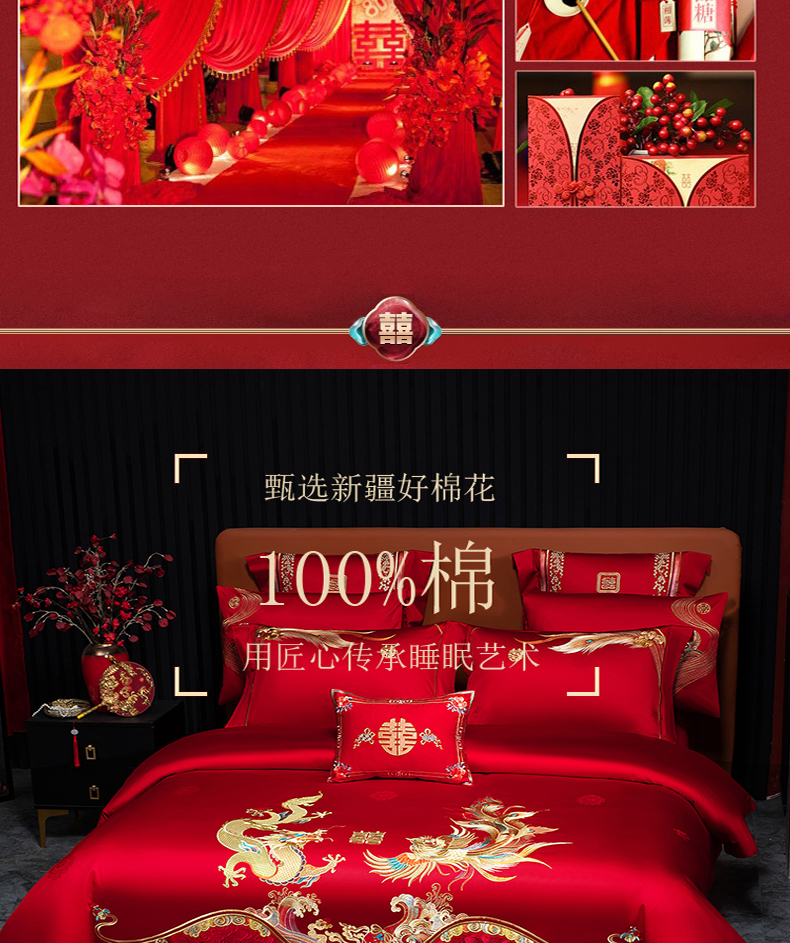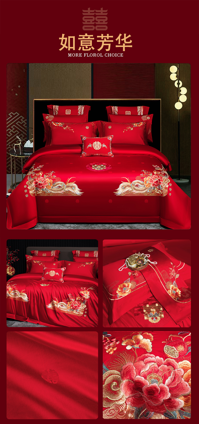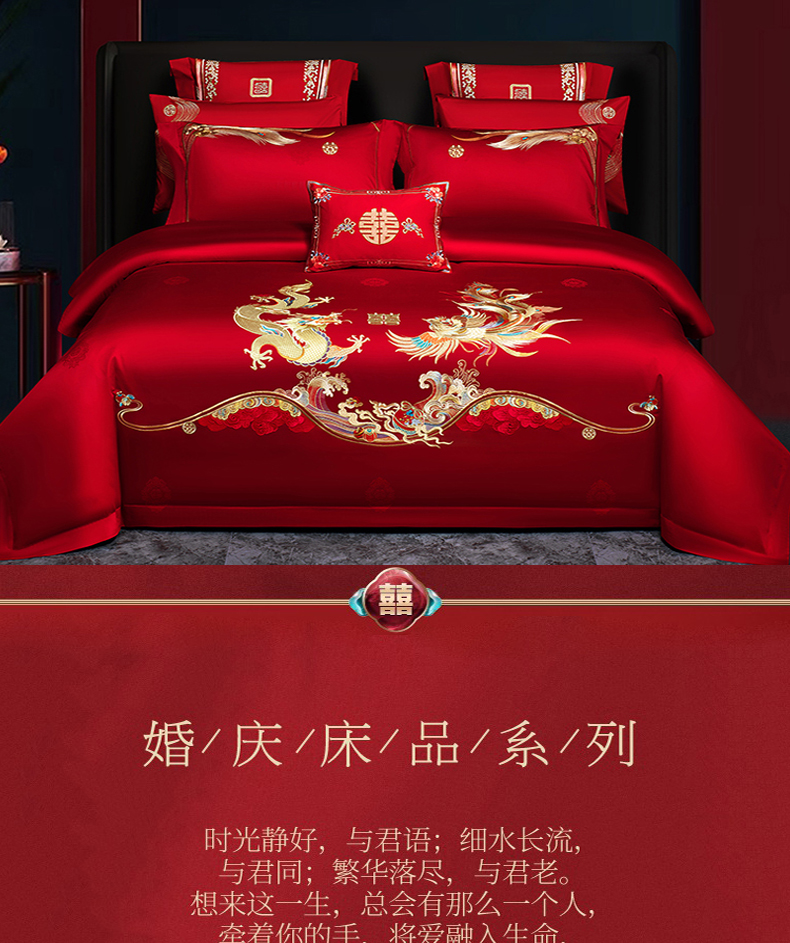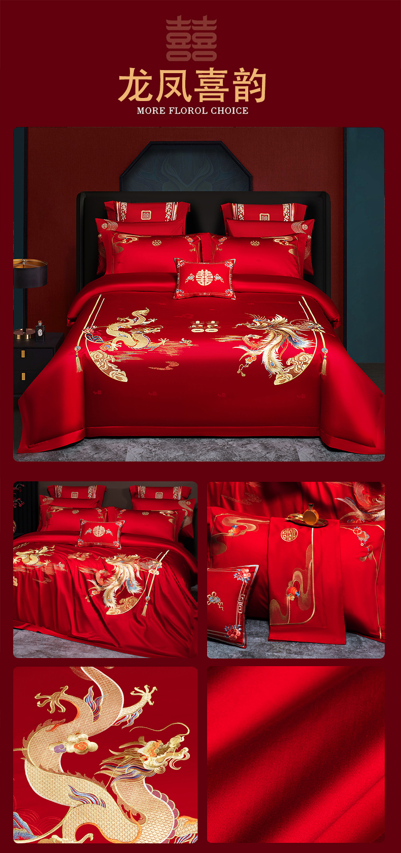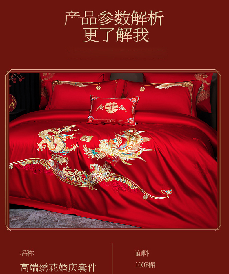 当前位置: 91家纺网 > 商品网购 > 床品套件 > 四件套 > 婚庆四件套 > 蒂爵 2026年重绣性价比款长绒棉提花全棉纯棉绣花婚庆四件套多件套大红色刺绣结床上用品 如意龙凤