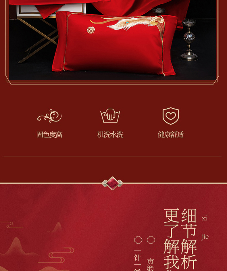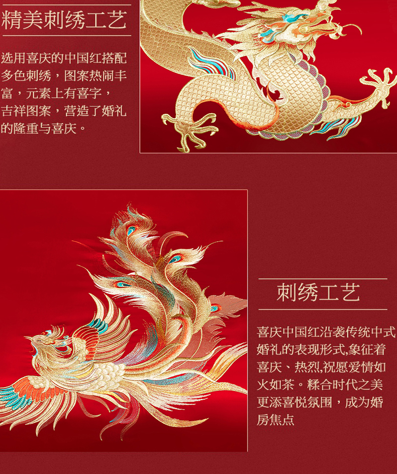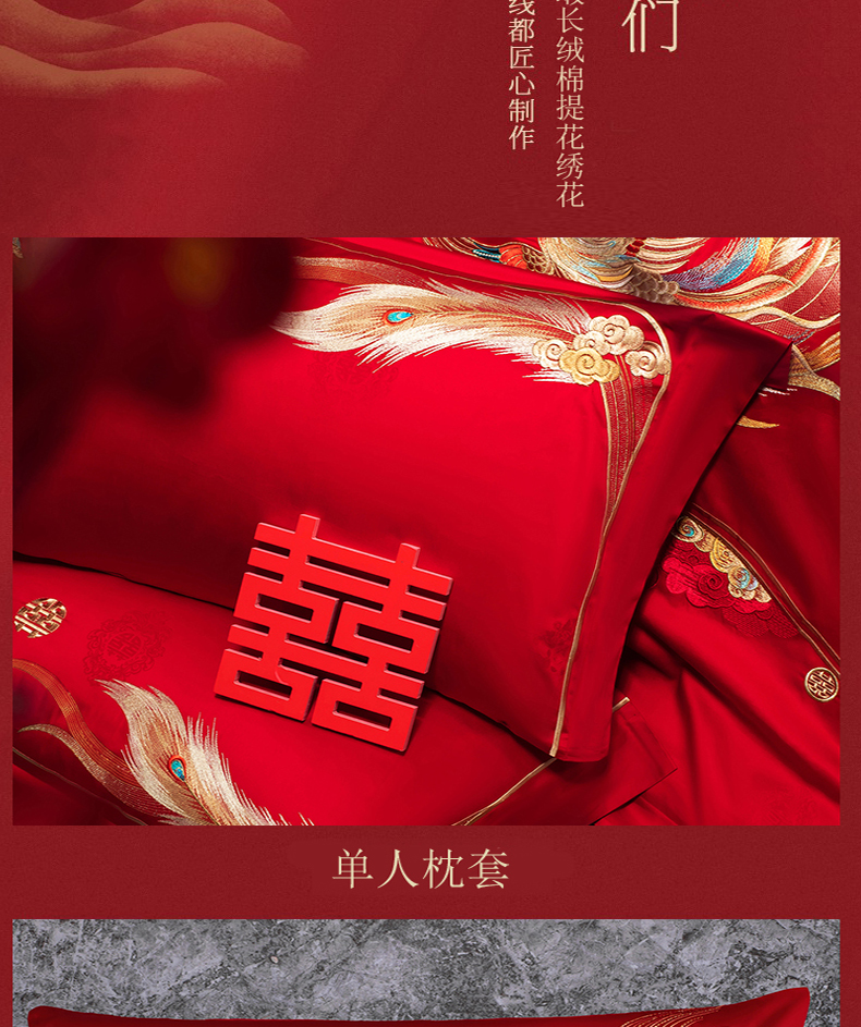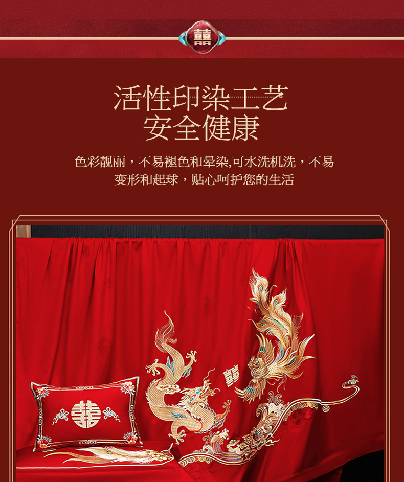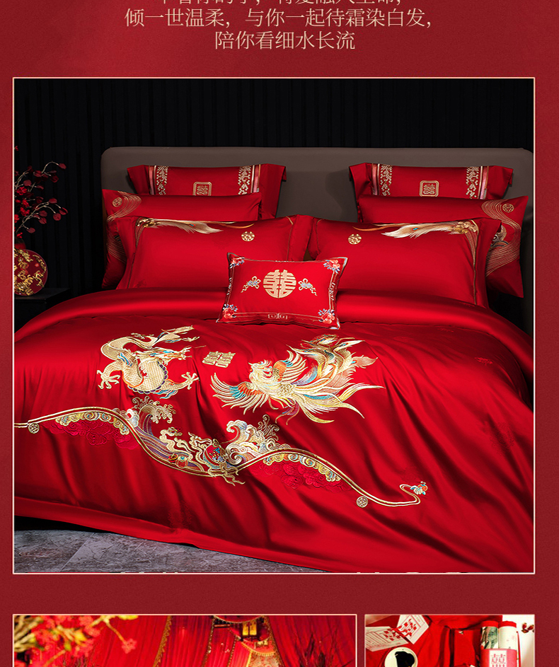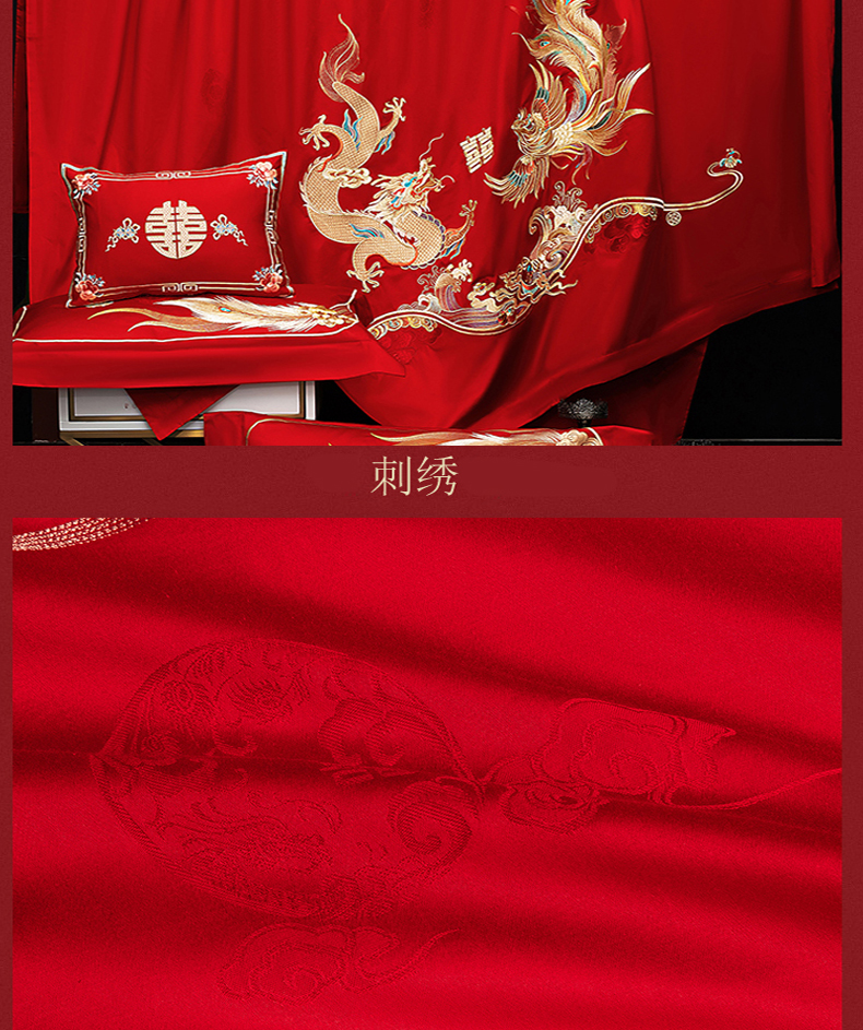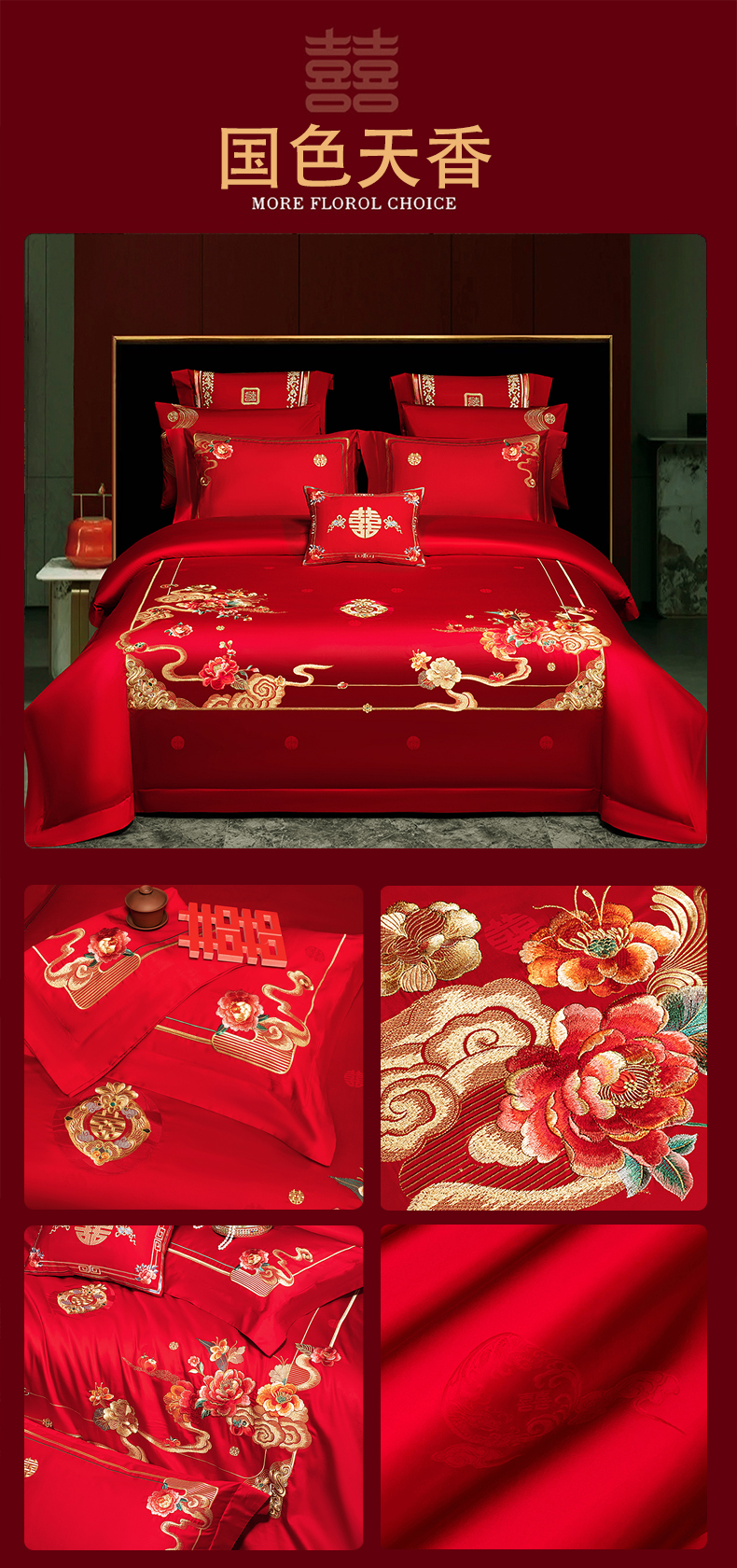 当前位置: 91家纺网 > 商品网购 > 床品套件 > 四件套 > 婚庆四件套 > 蒂爵 2026年重绣性价比款长绒棉提花全棉纯棉绣花婚庆四件套多件套大红色刺绣结床上用品 如意龙凤