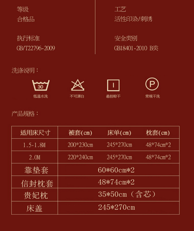1.8m(6英尺)床单九件套 | ¥450.00 |