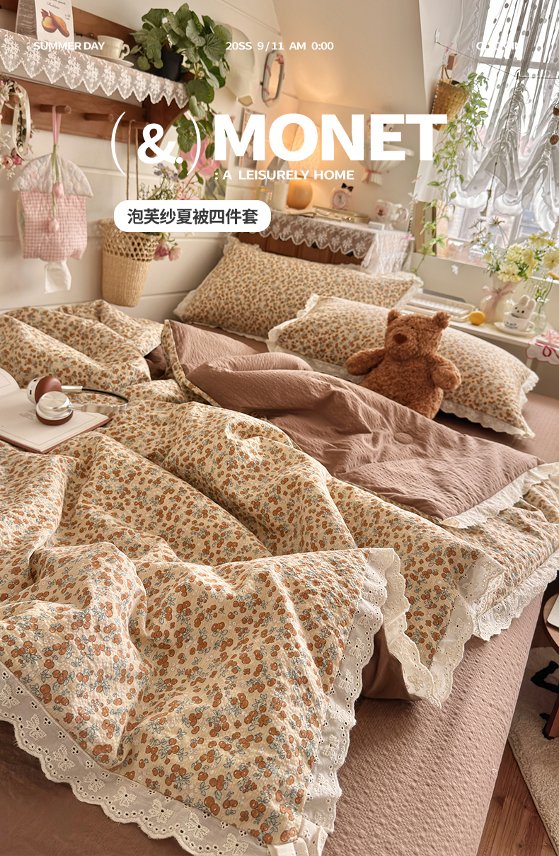 (总)初念 2025新款亲肤舒适双层纱云感纱小花边四件套-拾光,拾光-芭比兔,拾光-复古浪漫,拾光-花丛萌兔,拾光-花丛女孩,拾光-少女象,拾光-狮子唱片,拾光-思念女孩,拾光-星眠云野
