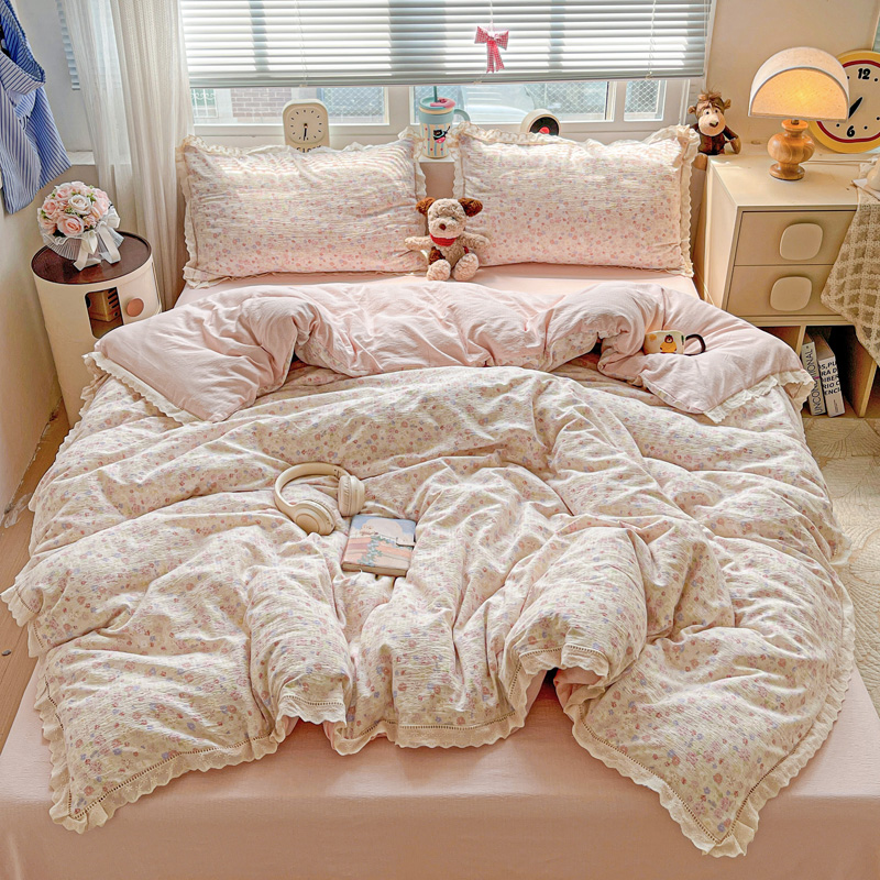 (总)梦纤绒 2025新款云感木棉皱皱双层纱全棉花边四件套,白茶-绿,百福蓝,薄荷微凉,初恋,春风里,春晓,豆蔻,蝴蝶梦,花园兔,可颂,蜡笔画,莱茵河畔,兰黛,山野栀子,素颜,太妃糖,桃花诺,田园拾趣-黄,小黑兔,心动,遇见,芝士奶酪,紫爱心,紫苏,组合图(仅展示)