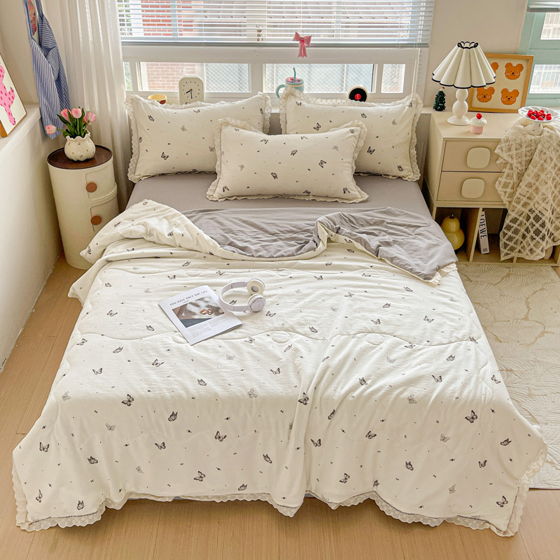 商品名称:梦纤绒 2026新款云感皱皱纱花边款夏被夏凉被空调被四件套 蝴蝶梦