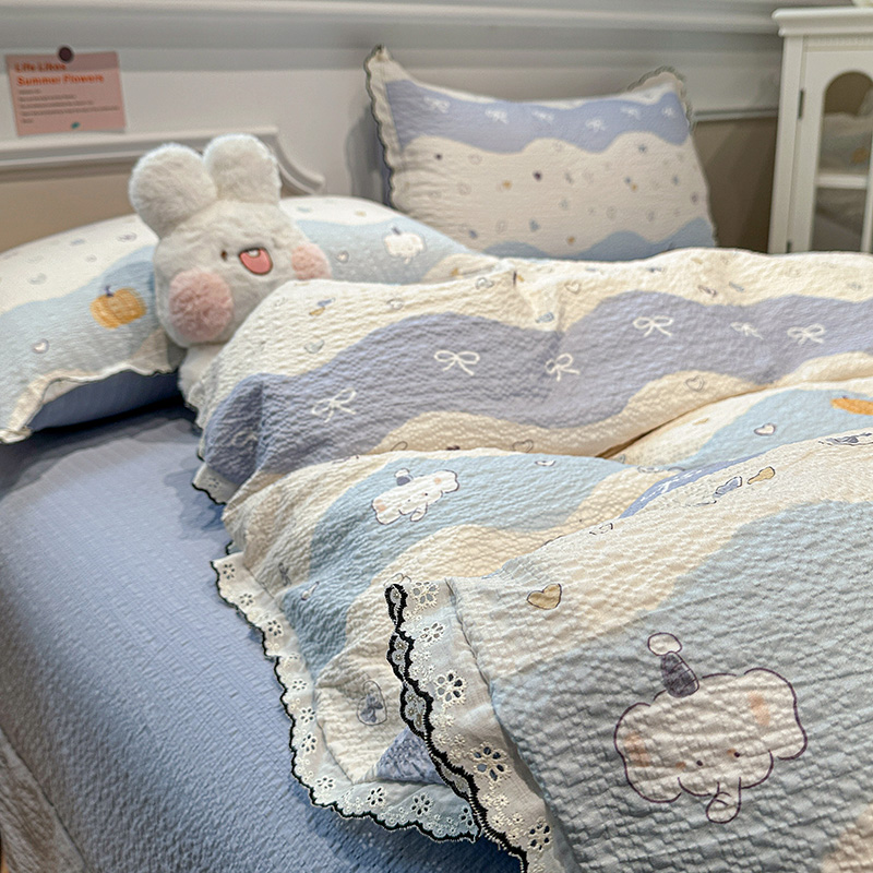 (总)一比一家纺 2026新款彩色花边木棉皱皱纱夏被四件套,阿吉豆,初心粉,初心蓝,扶摇,赫本,花间女孩,花漫漫,阑珊,罗卡,奶芙喵,甜心格格,午后花园,小马驹,邂逅,野餐兔,樱花季,悠然,紫烟