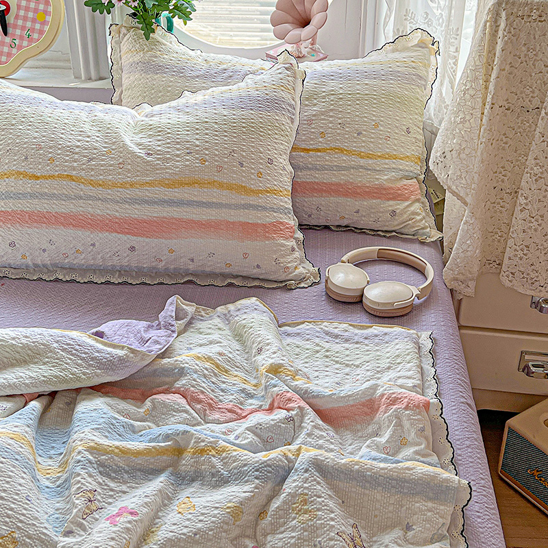 (总)一比一家纺 2026新款彩色花边木棉皱皱纱夏被四件套,阿吉豆,初心粉,初心蓝,扶摇,赫本,花间女孩,花漫漫,阑珊,罗卡,奶芙喵,甜心格格,午后花园,小马驹,邂逅,野餐兔,樱花季,悠然,紫烟