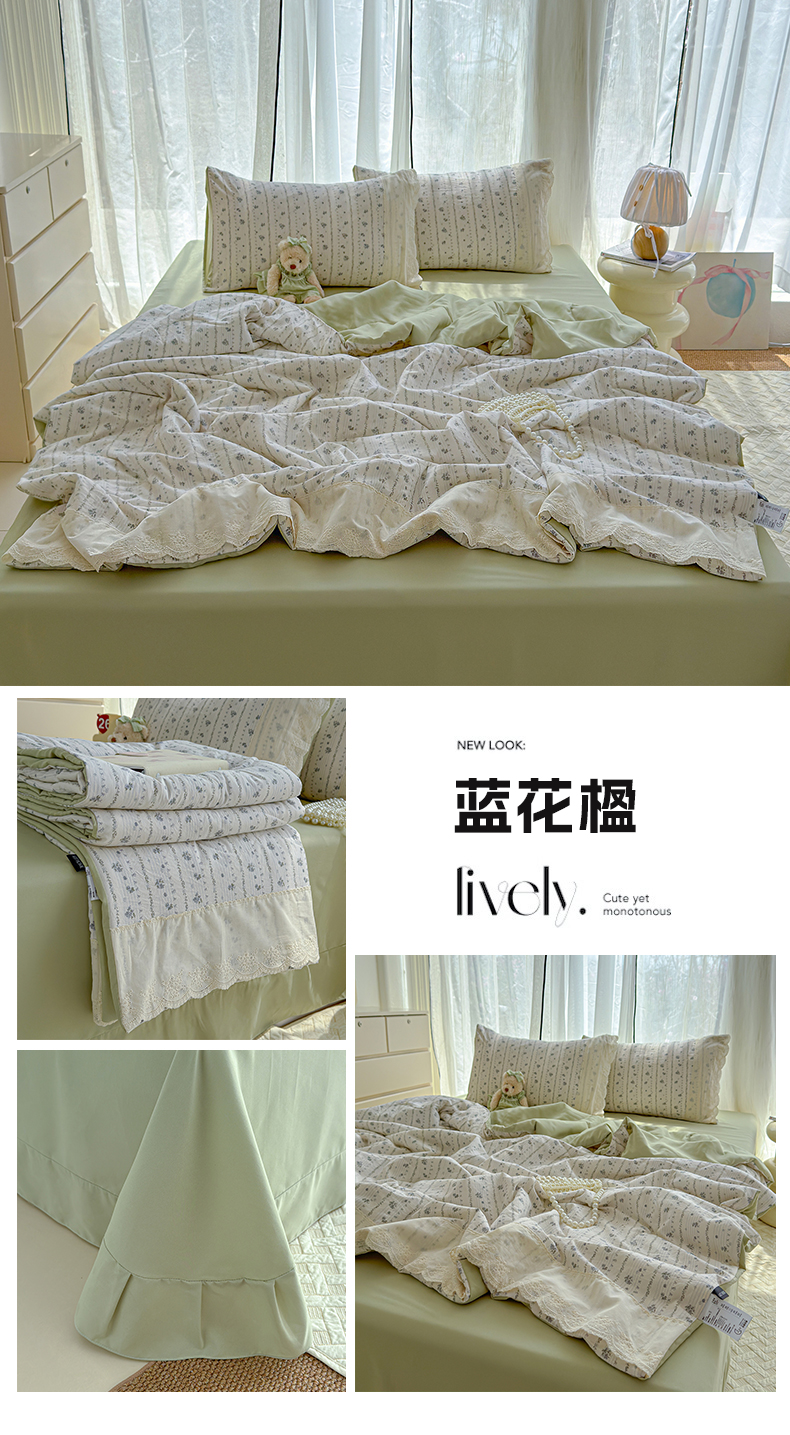 (总)竹合家纺 2026春夏新款古法水洗仿棉云感棉夏被四件套全棉花边印花夏凉被空调被,棠梨,兔朵朵,蓝花楹,花畔,甜梦小狗,小马驹,花酿,紫蝶,素羽,桃笺,安之若素,瑾夏,组合图