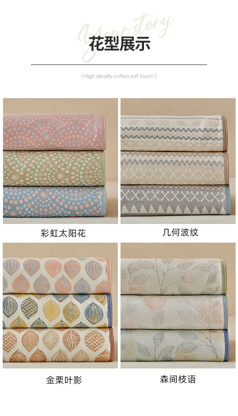 (总)孑寐家纺 2026新款100%纯棉色织双面大提花老粗布凉席三件套,森间枝语-浅绿,组合,银杏叶影-绿色,银杏叶影-蓝色,银杏叶影-粉色,彩虹太阳花-粉色,彩虹太阳花-蓝色,彩虹太阳花-绿色,几何波纹-蓝灰,几何波纹-米色,几何波纹-奶咖,金栗叶影-蓝色,金栗叶影-暖棕,金栗叶影-浅粉,森间枝语-橘调,森间枝语-蓝色